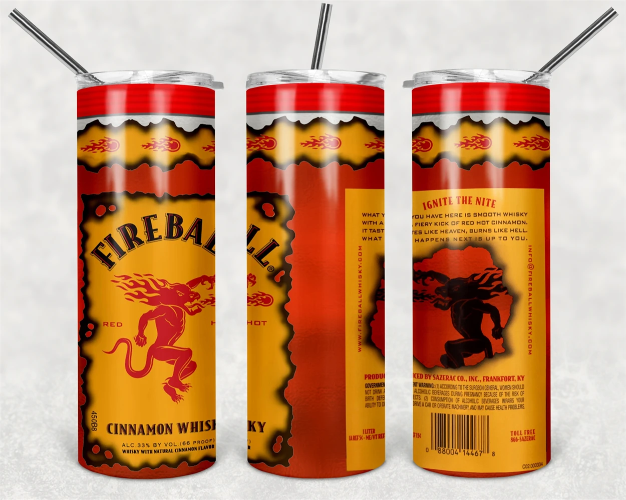 Fireball Cinnamon Whisky Tumbler Png, 20oz & 30oz Skinny