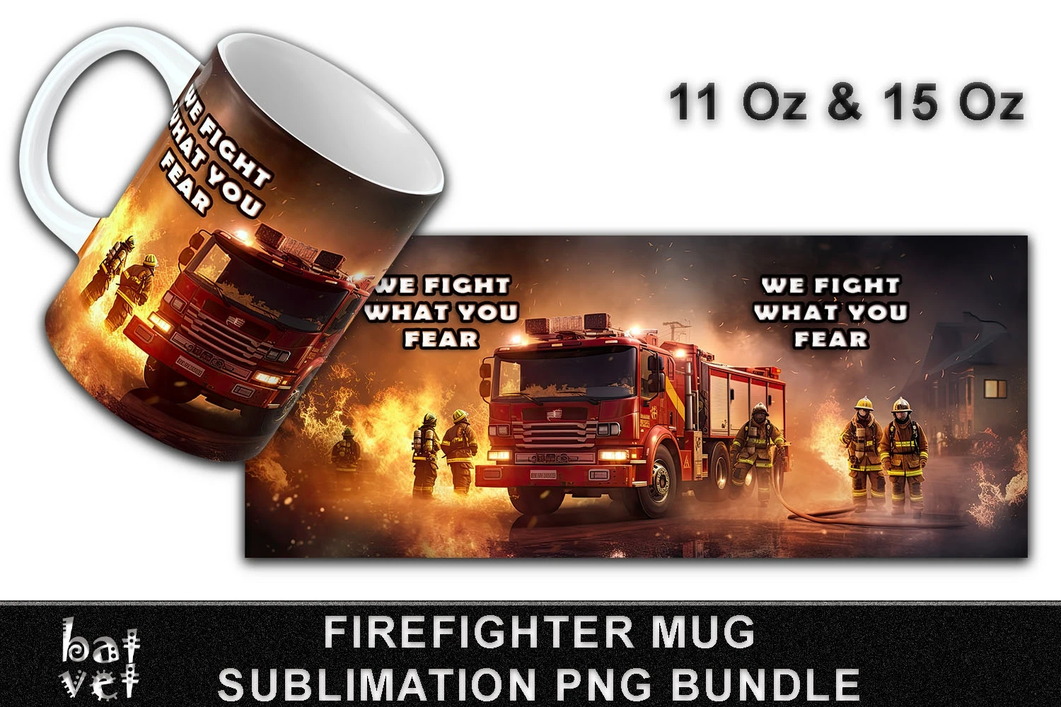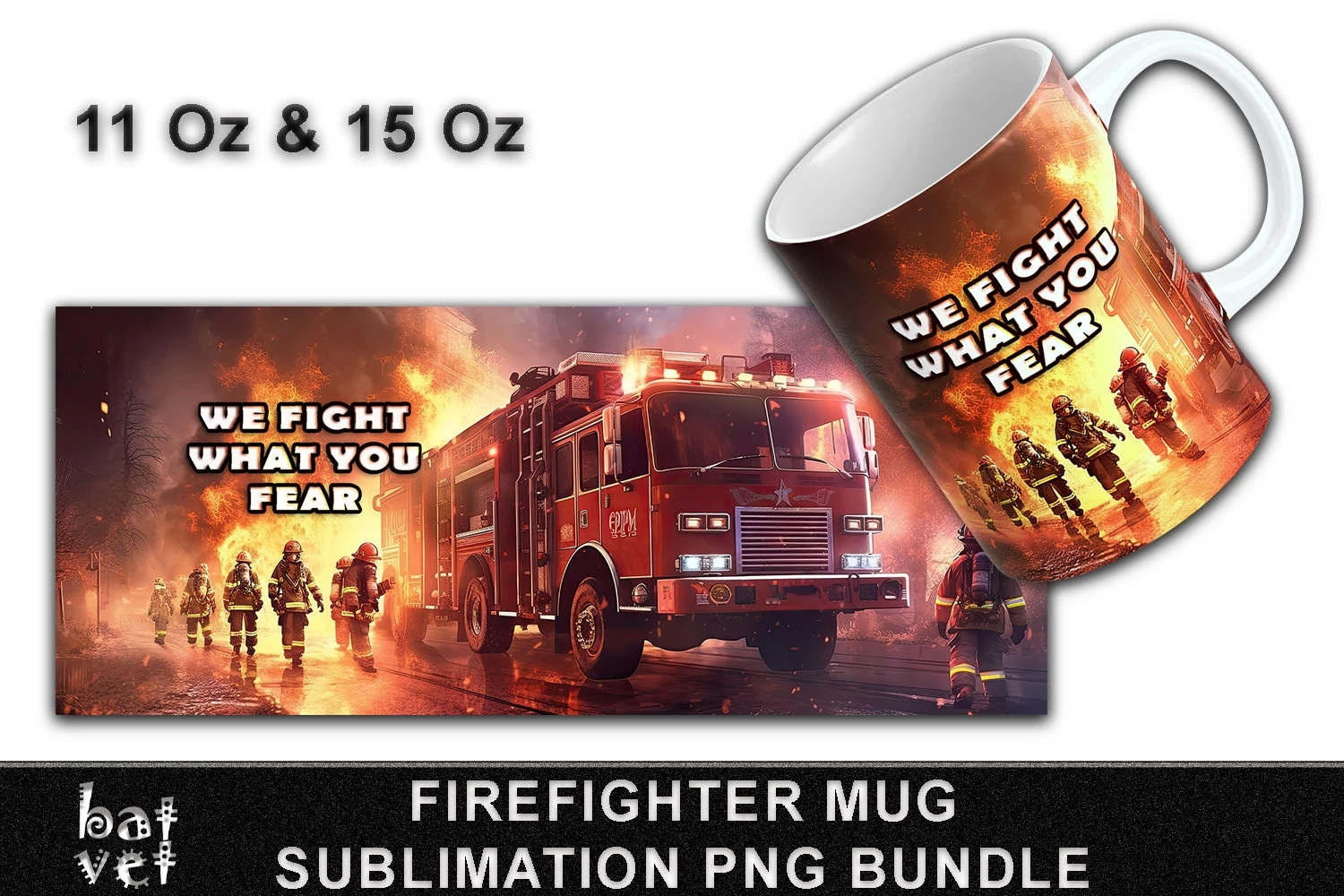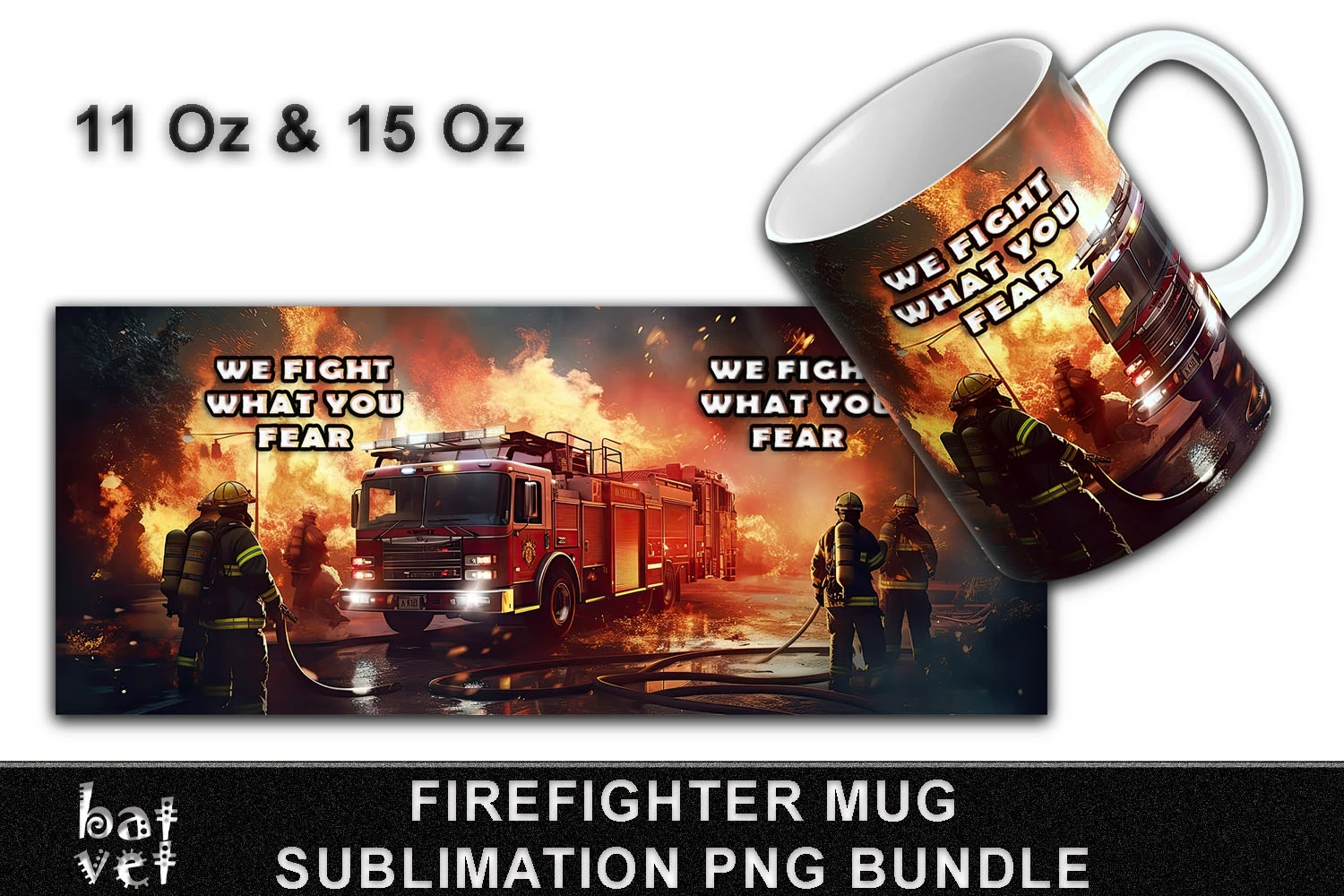11 Oz Mug Wrap and 15 Oz Mug Wraps "We Fight What You Fear", Firefighters, Fire, Fire Truck Sublimation Bundle.