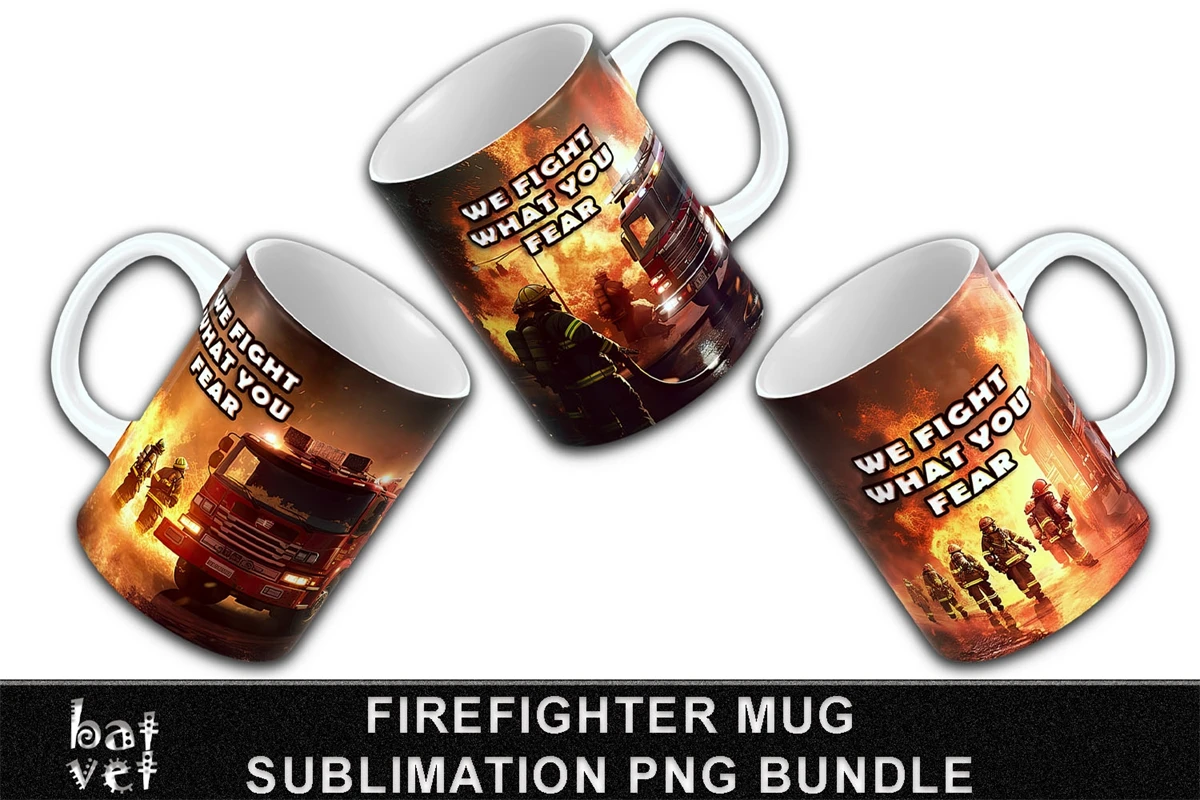 Firefighter Mug Sublimation Bundle / Firefighter Coffee Cup / 3 PNG Designs