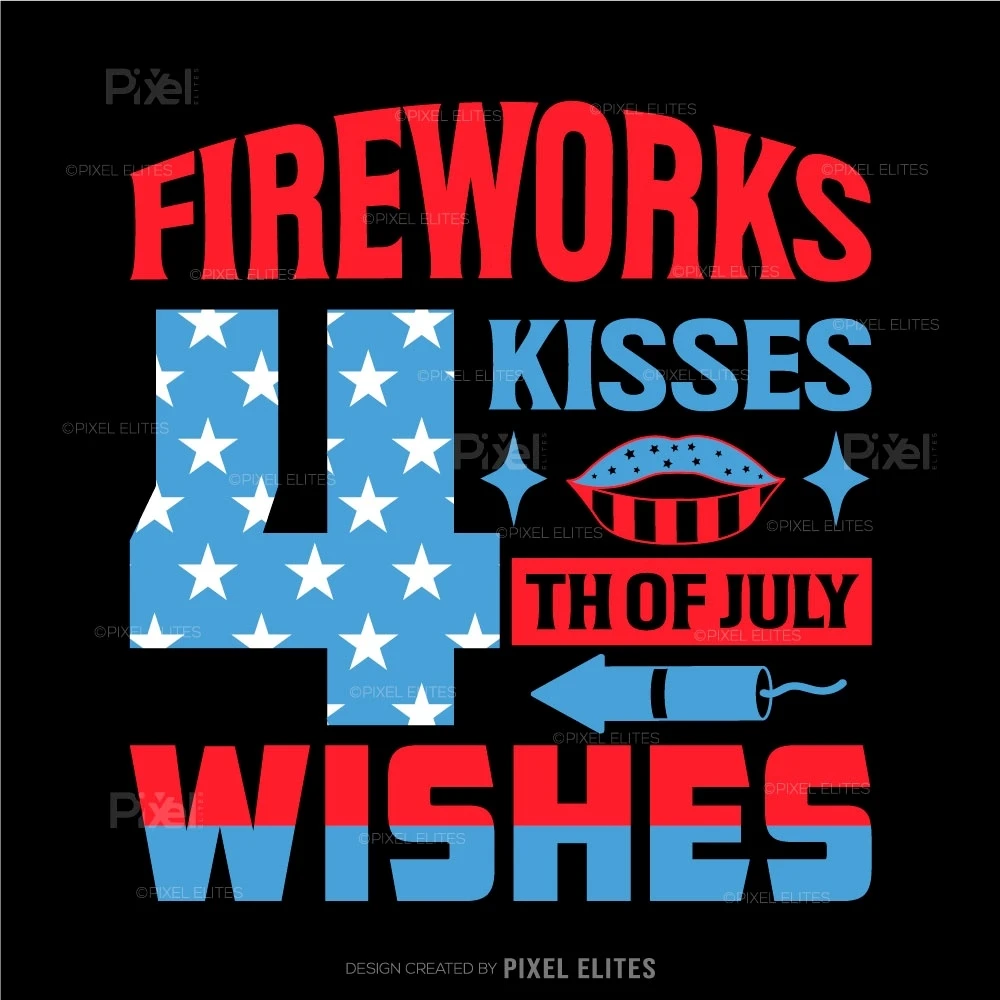 Celebrate the magic of Independence Day with the Fireworks Kisses 4th Of July Wishes SVG T-shirt Design Bundle! This charming collection blends festive fireworks imagery with heartfelt American quotes, perfect for creating memorable 4th of July apparel and crafts.