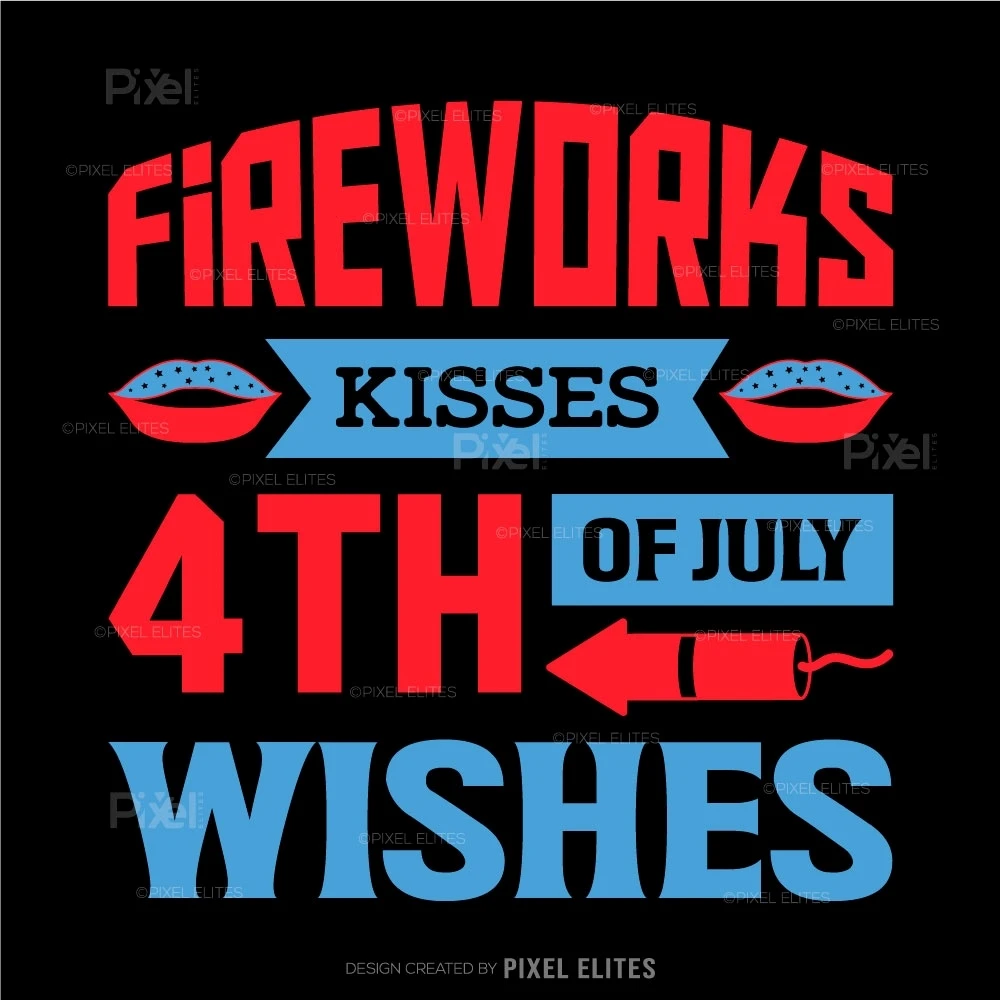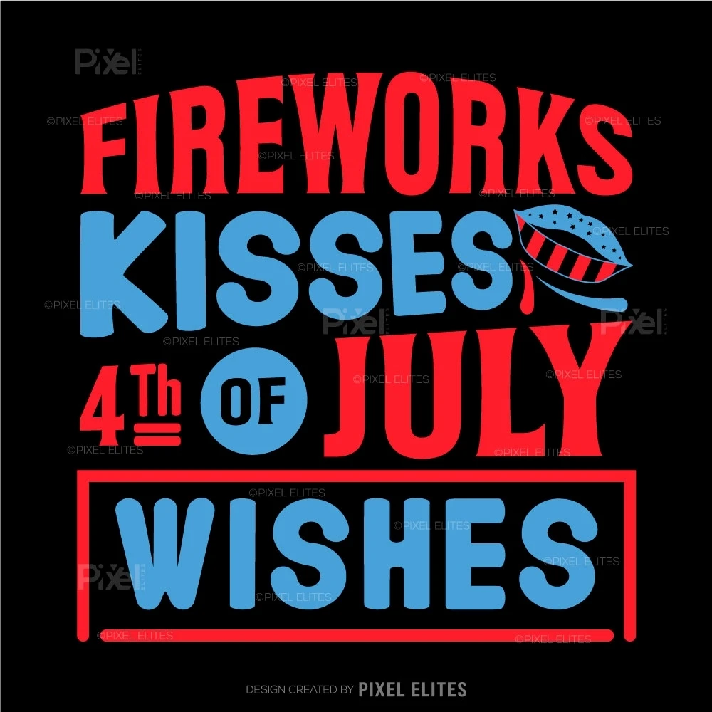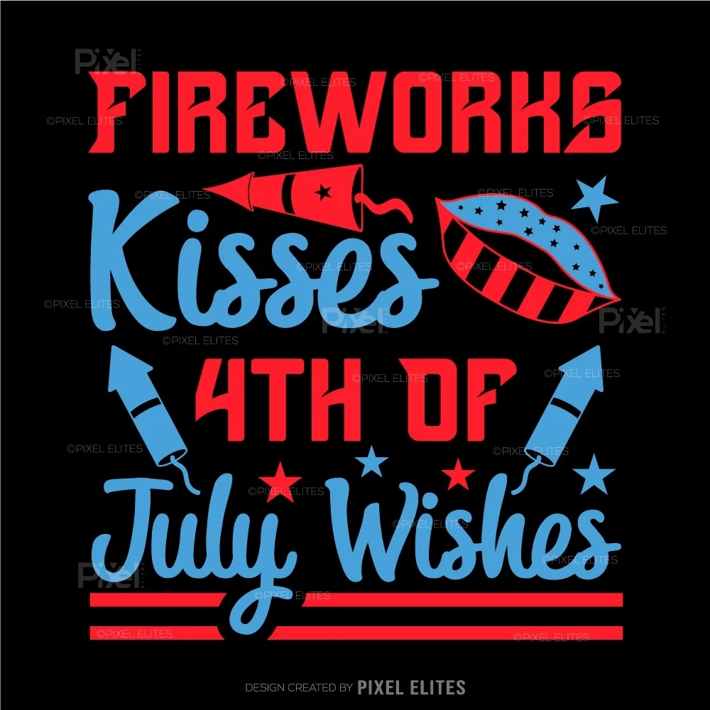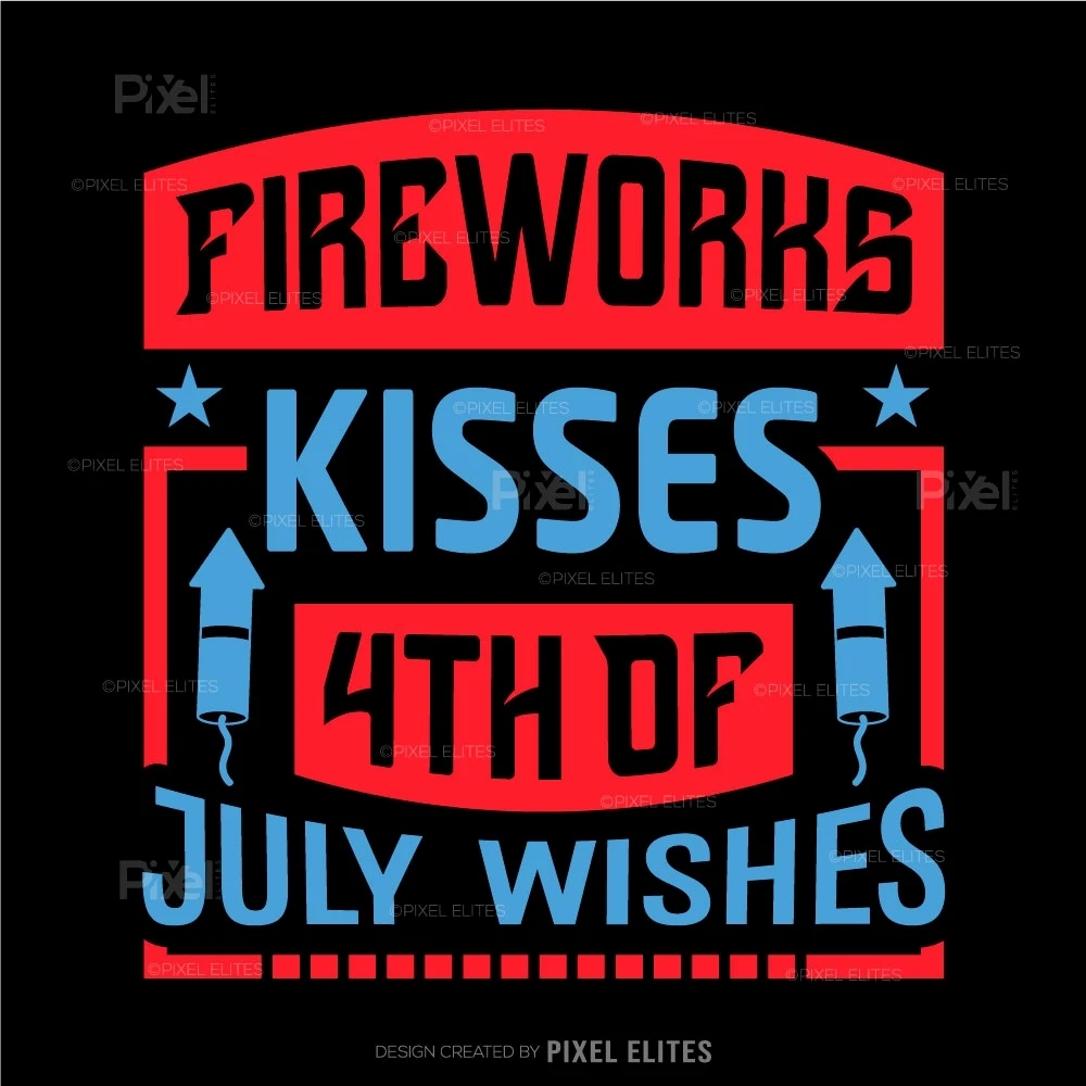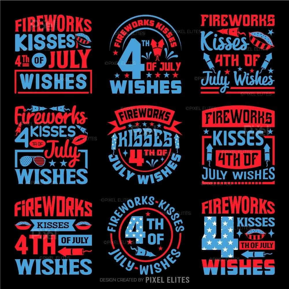 Fireworks Kisses 4th Of July Wishes SVG Independence Day T-shirt Design Bundle Memorable Day with American Quotes