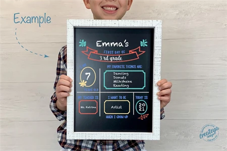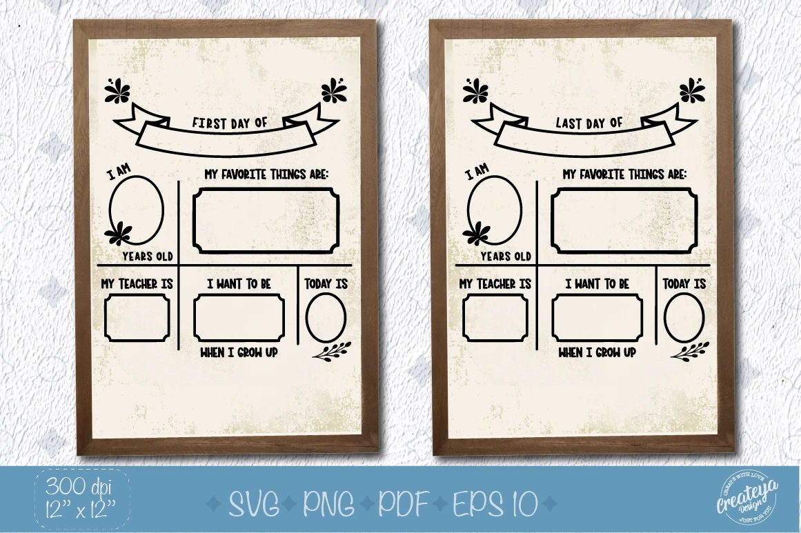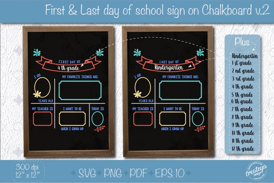 First day of school SVG and last day of school SVG design for dry erase board or chalkboard. Last day of kindergarten Digital Cut file made for cutting machines. You can cut and apply the design in vinyl to the chalkboard or dry erase board, then fill it in with chalk or markers so you can reuse it every new school year.