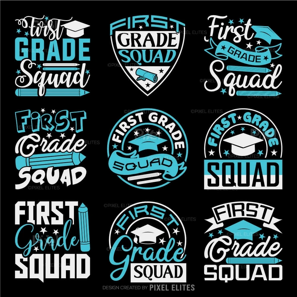First Grade Squad SVG Cut Files Bundle Senior Graduate Design for T-Shirts Education EPS, PNG, DXF for Cricut & Vinyl Decals