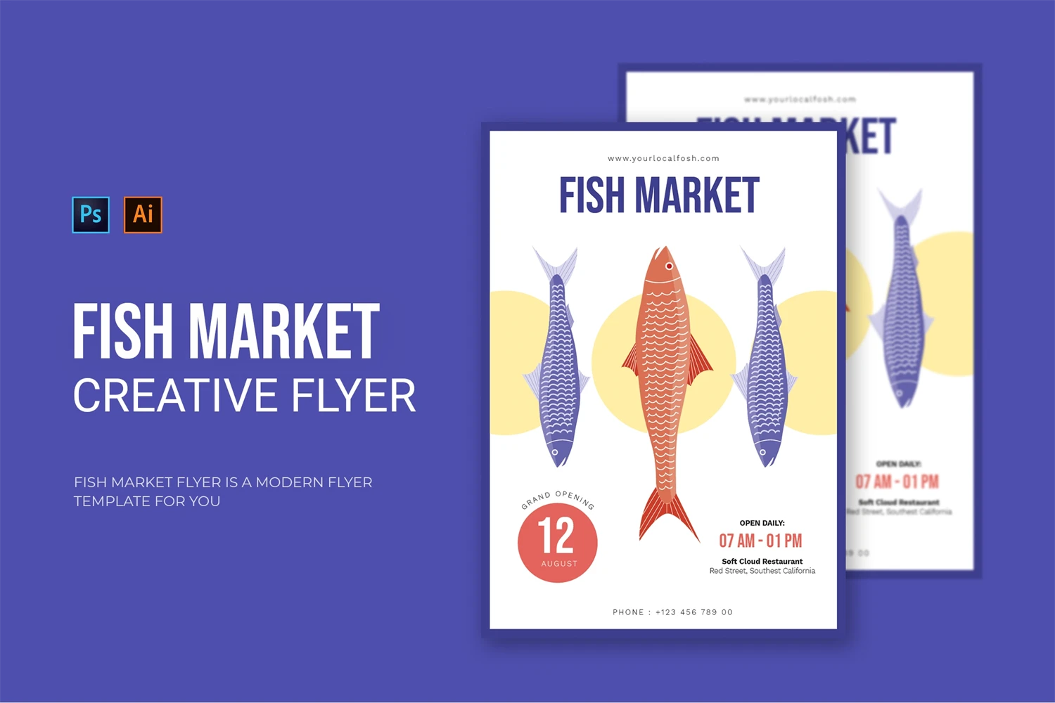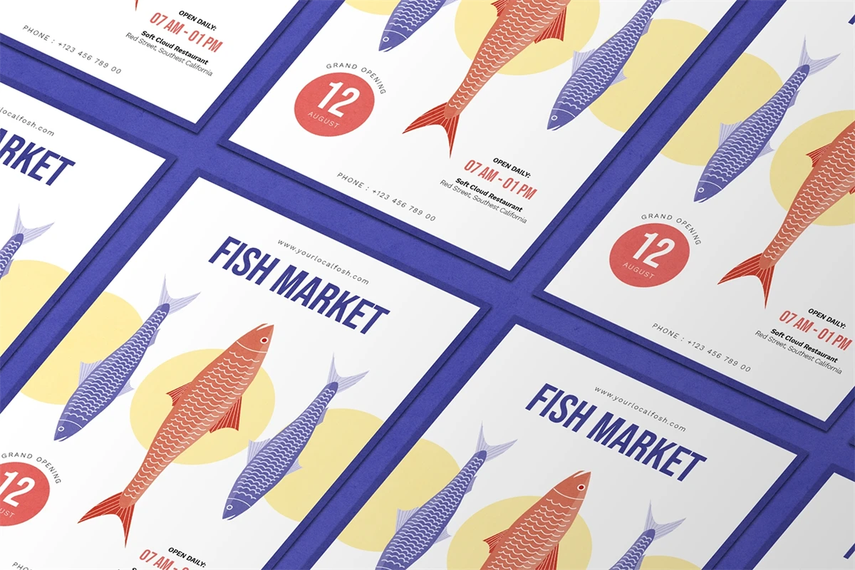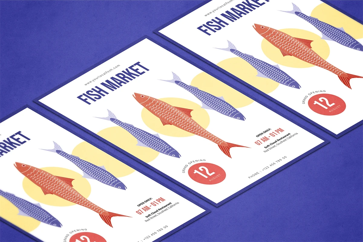 Fish Market - Flyer. This Flyer template is designed for your company's business needs. very clean and elegant, and also easily edited and adjusted to your liking