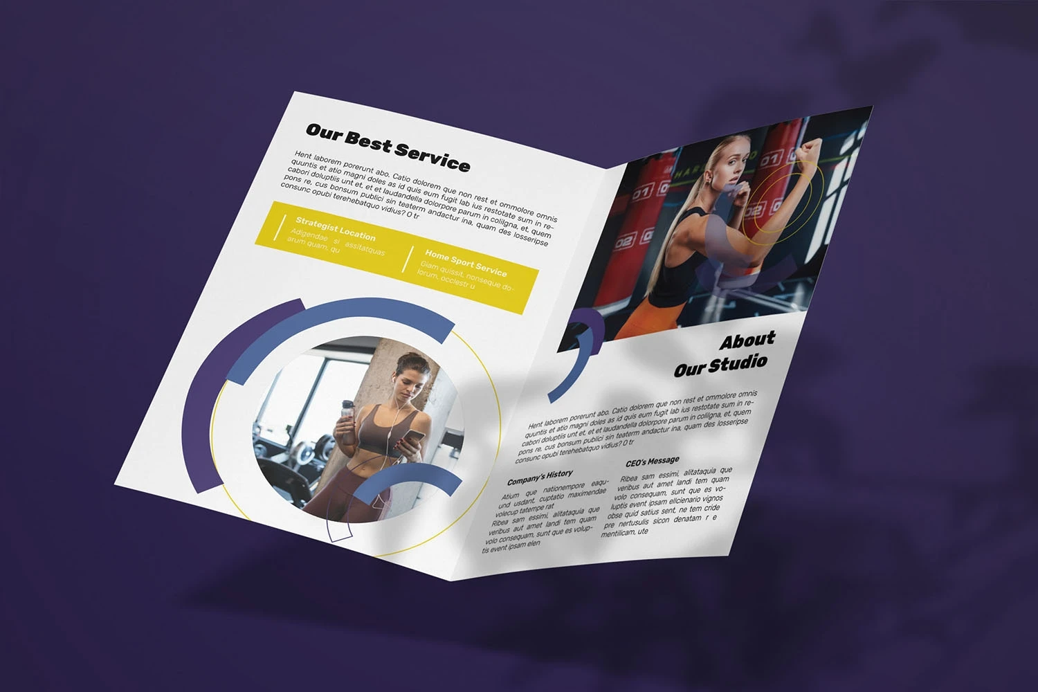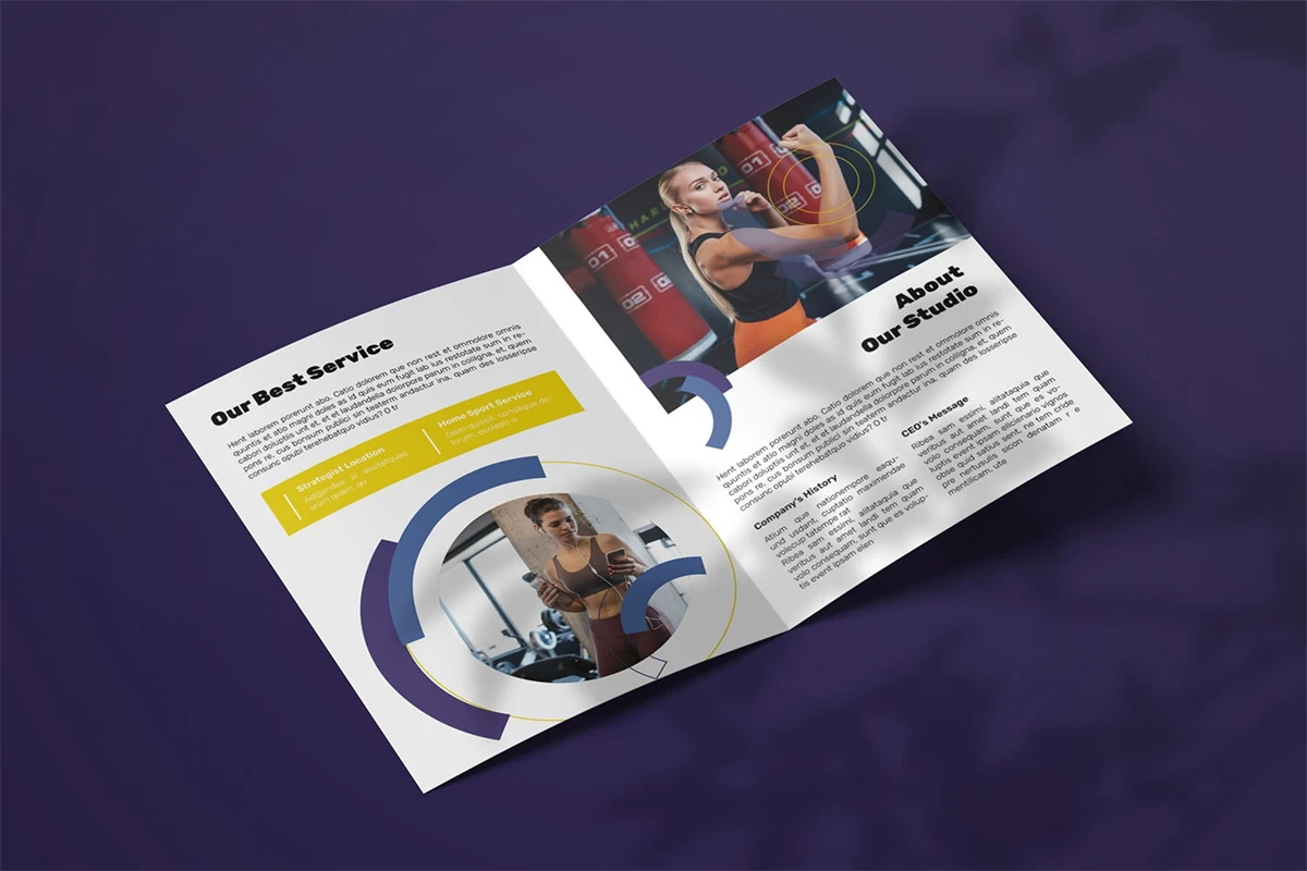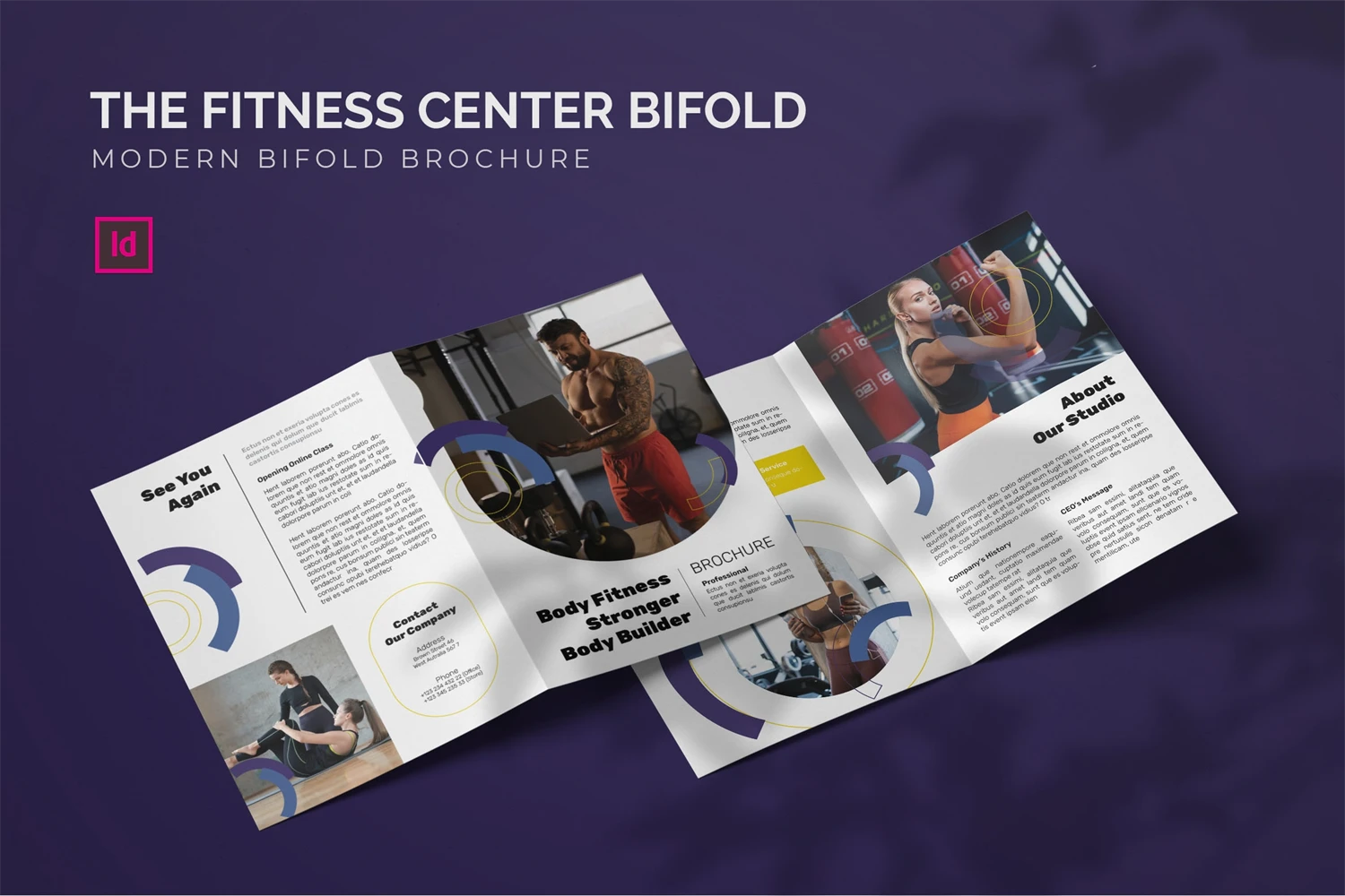 Fitness Center - Bifold Brochure We present this Bifold Brochure for you, simple and very elegant, and this Bifold Brochure is suitable for all types of your business, made with adobe inDesign, very easy to customize, Hope you Like it, dont forget to rate, Thanks.
