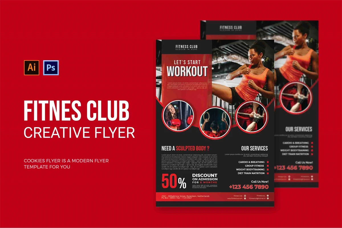 Fitness Club - Flyer. This Flyer template is designed for your company's business needs. very clean and elegant, and also easily edited and adjusted to your liking
