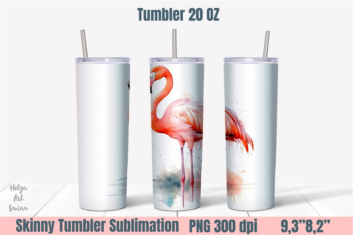 Flamingo 20 oz skinny Tumbler Sublimation. Tumbler wrap design.