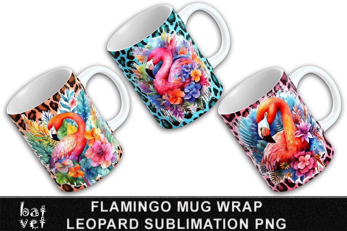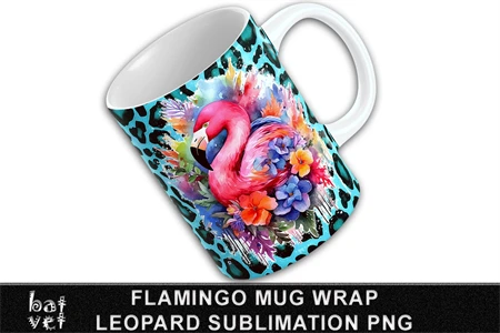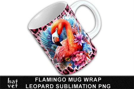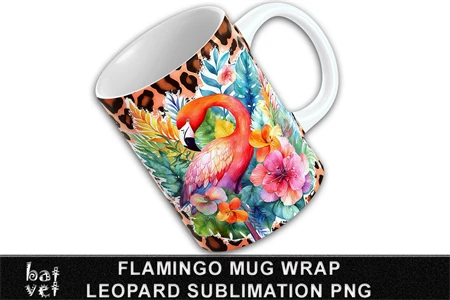 Flamingo Mug Sublimation PNG / Tropical Leopard Mug Wrap PNG