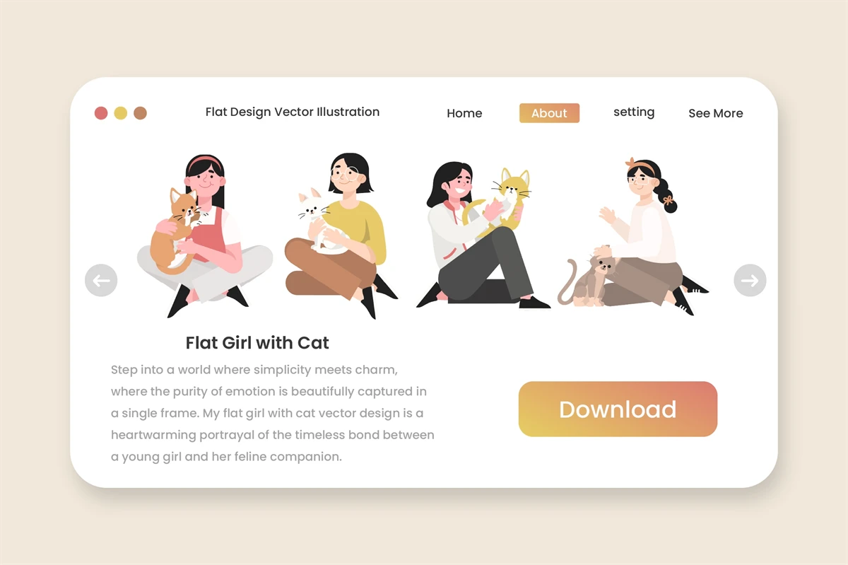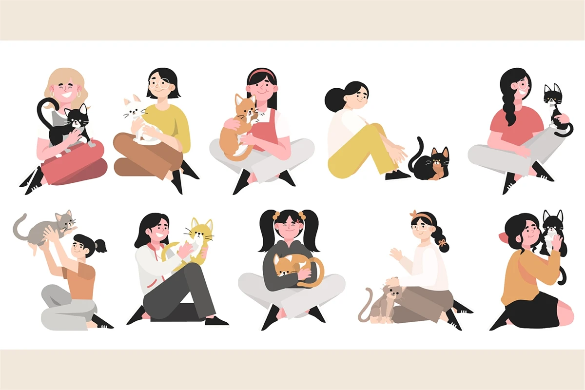 10 Flat Girl With Cat - Illustration, Suitable for your website, application, or social media as a promotional asset and many other uses. Of course all hand painted with great attention to detail.