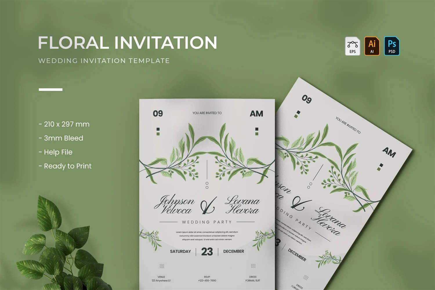 For the couple that wants to express their individuality, this wedding invitation is the right choice. In addition to the print size, we will also offer you with the digital size for Instagram Post and Instagram Story. Facebook and other social media sites also benefit from this. The accompanying AI file is fully vector, so you may scale it to any size without compromising the design.