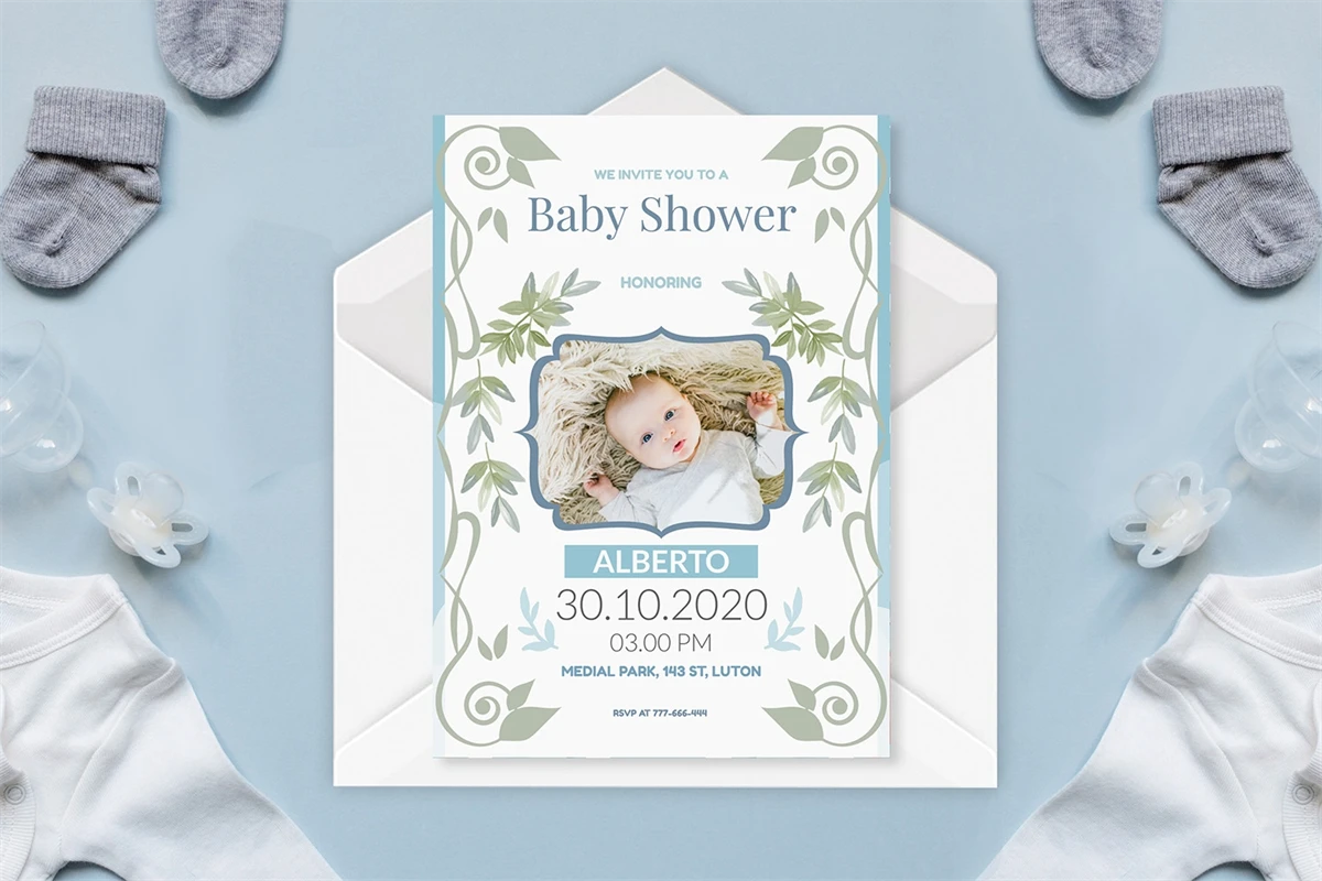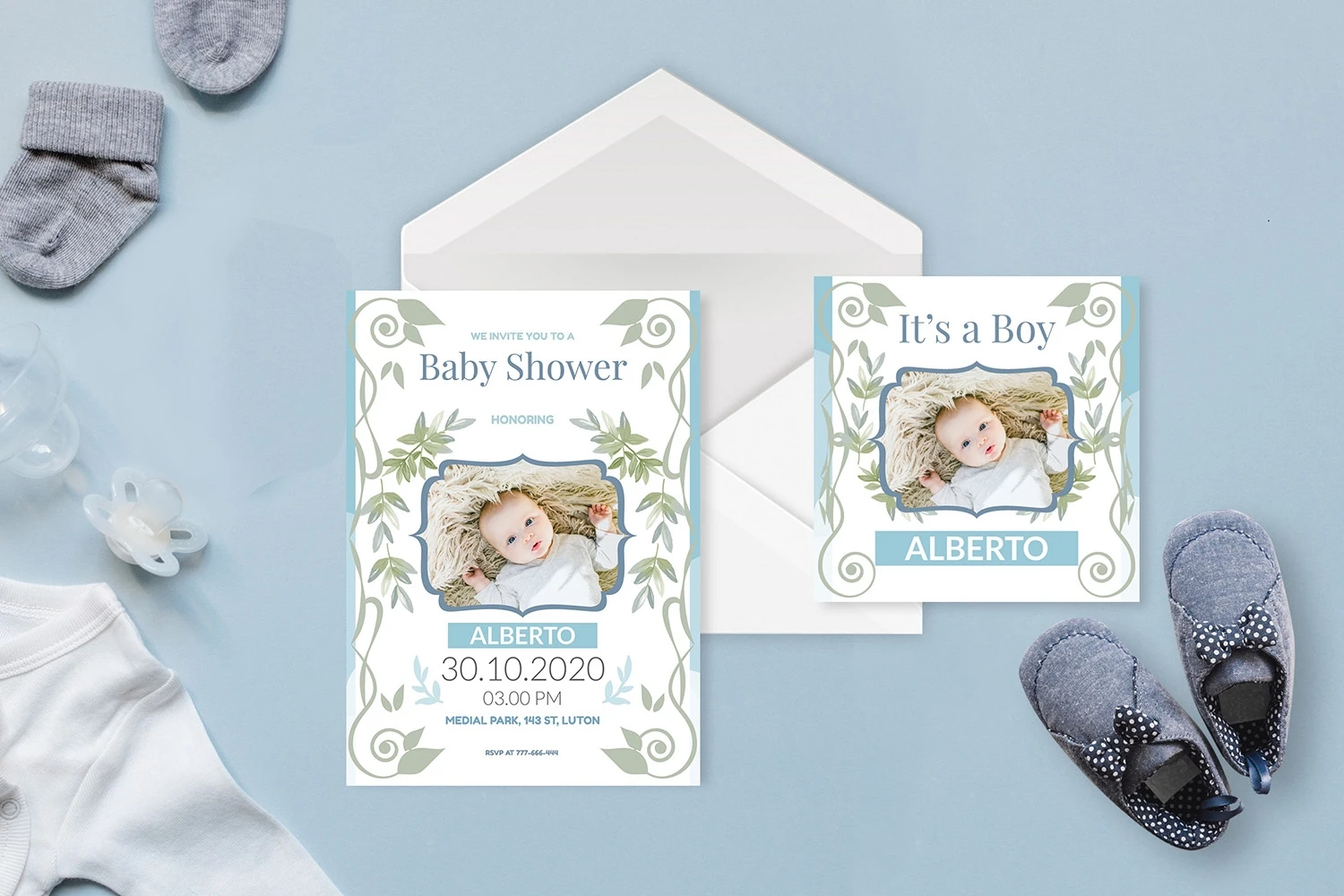 Invitation BOY(US A7 Card Size - 5 x 7 inch) + 0.125 inch bleeding