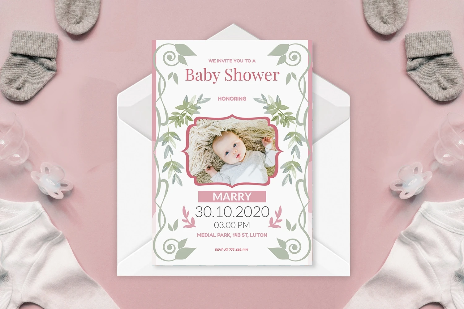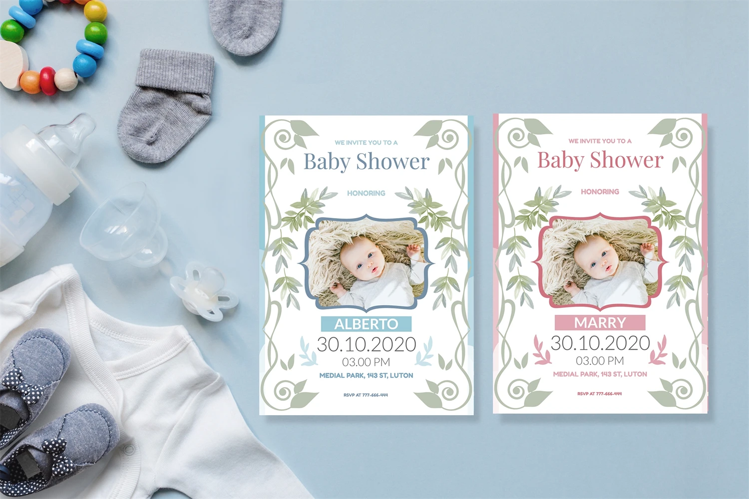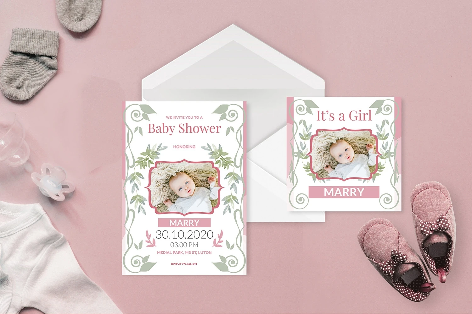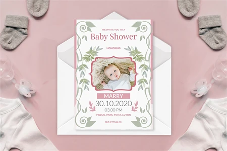 Floral Art - Baby Shower Invitation, is an invitation card leaflet, poster design, etc. Simple and very elegant You can easily edit & adjust each design because each layer such as text, images and shapes are well organized and highlighted.