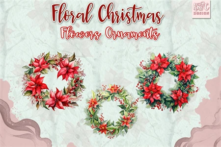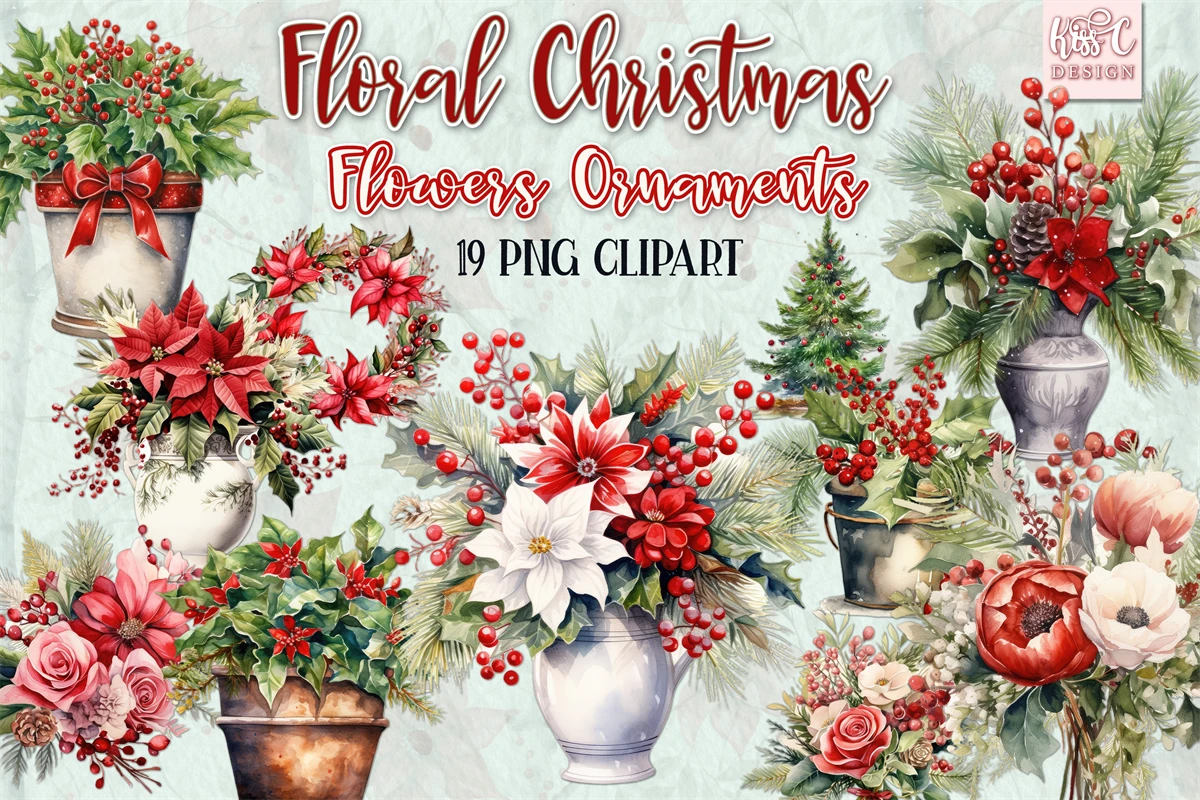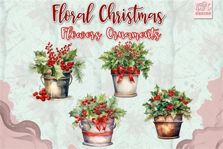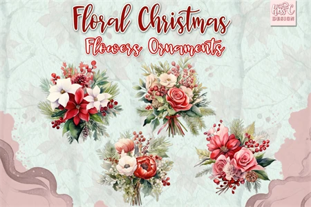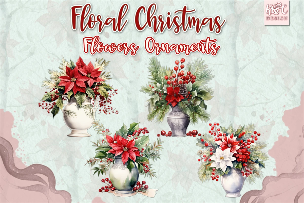 Floral Christmas Seasonal Decoration Illustration Clipart.