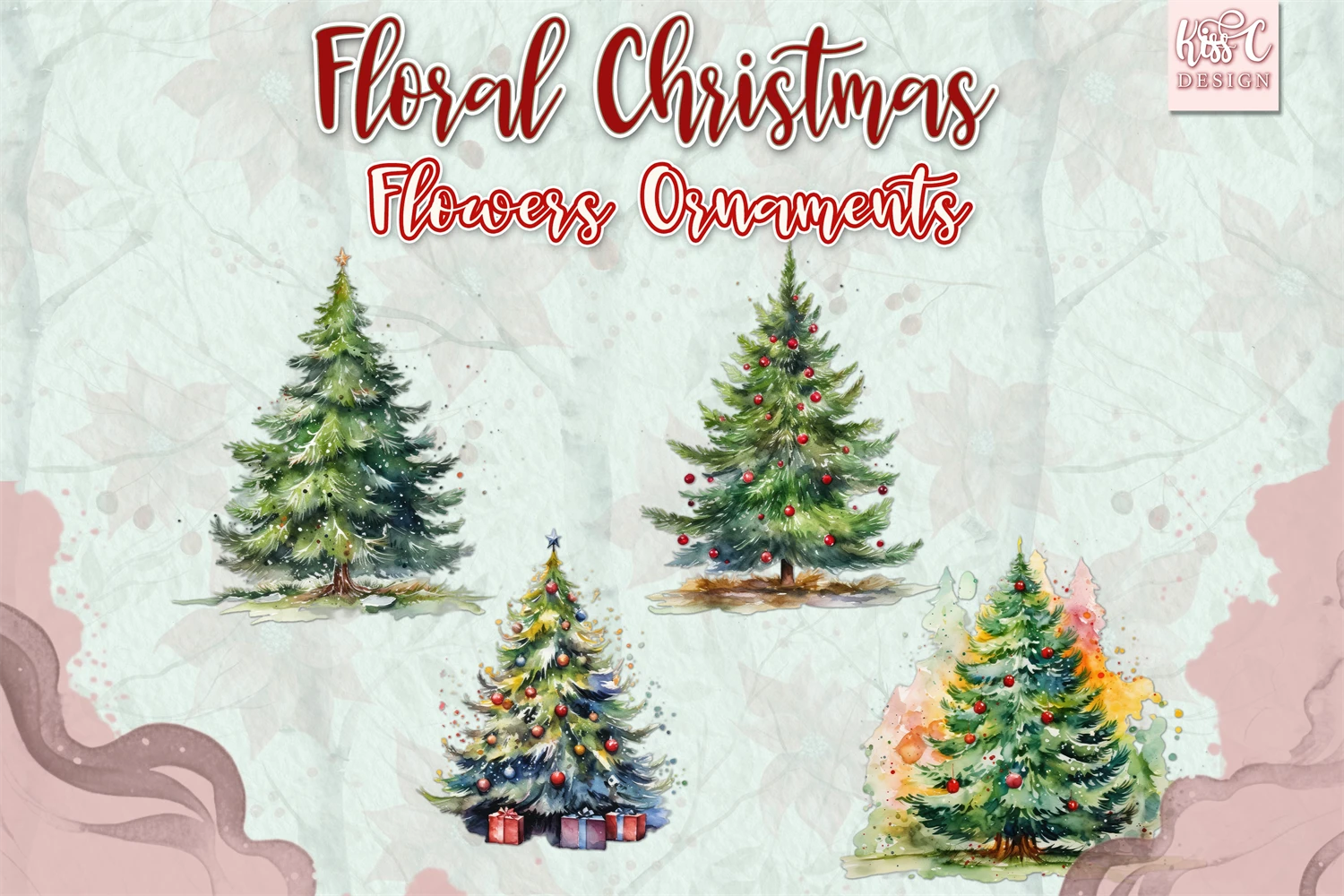 Watercolor Christmas floral decoration PNG sublimation for decorations.