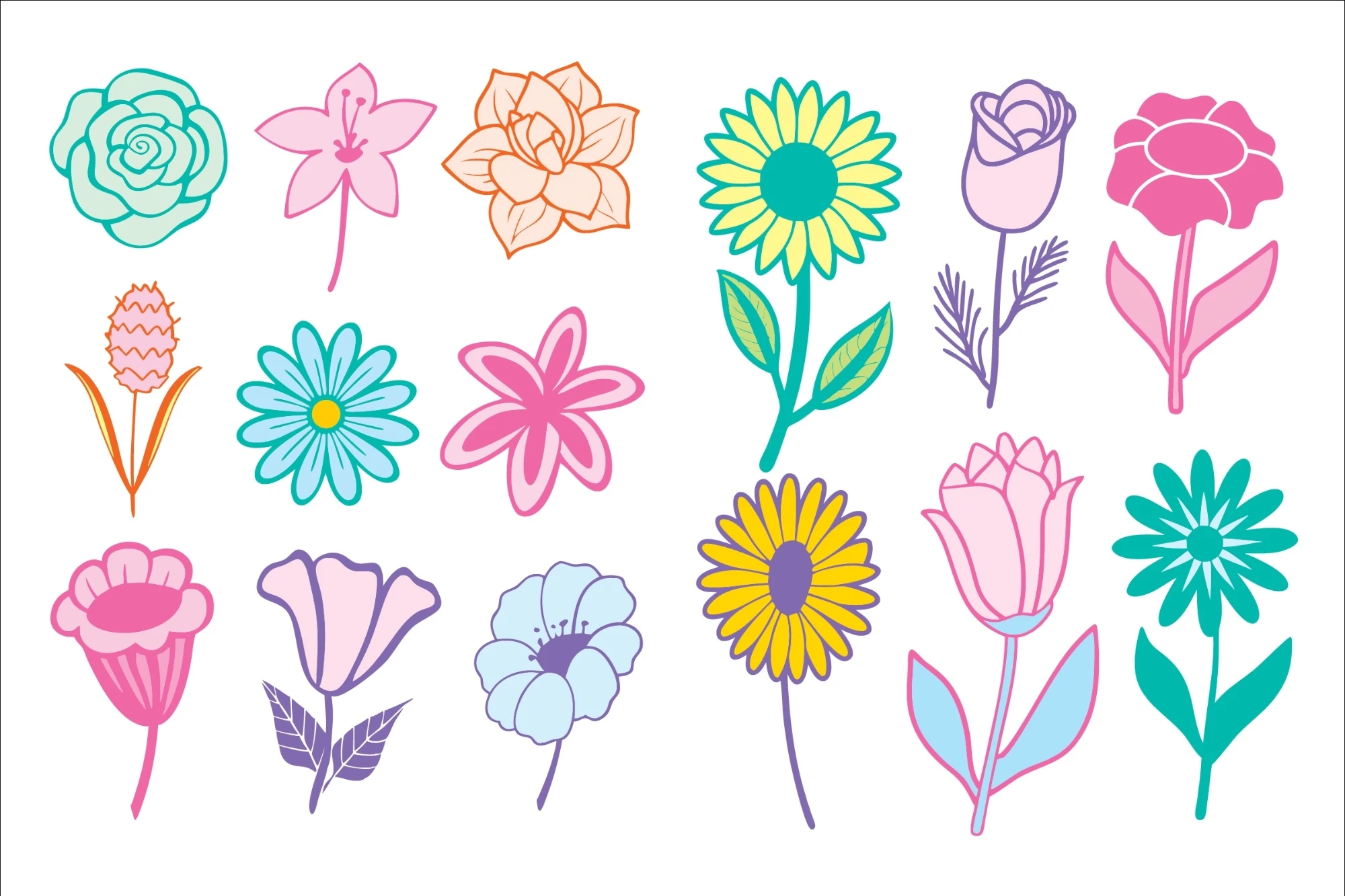 Floral Clip Art Illustration Set SVG PNG, Front & Back T-shirt Design, Hoodie, Sweatshirts, Etc