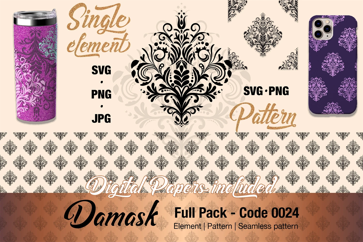 Intricate Floral Damask Full Pack with Seamless Pattern - 0024