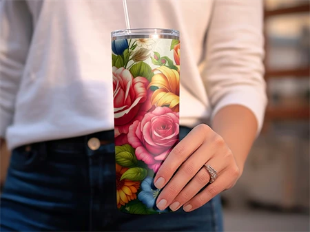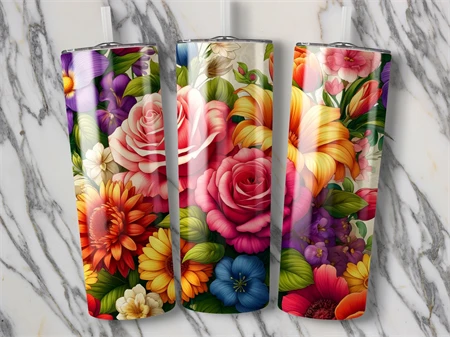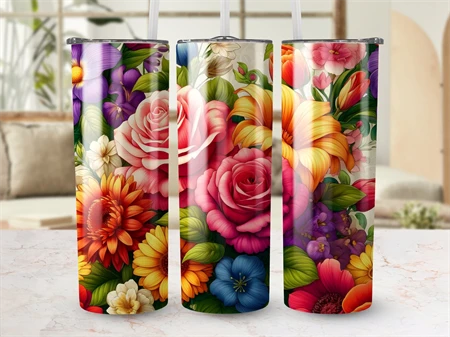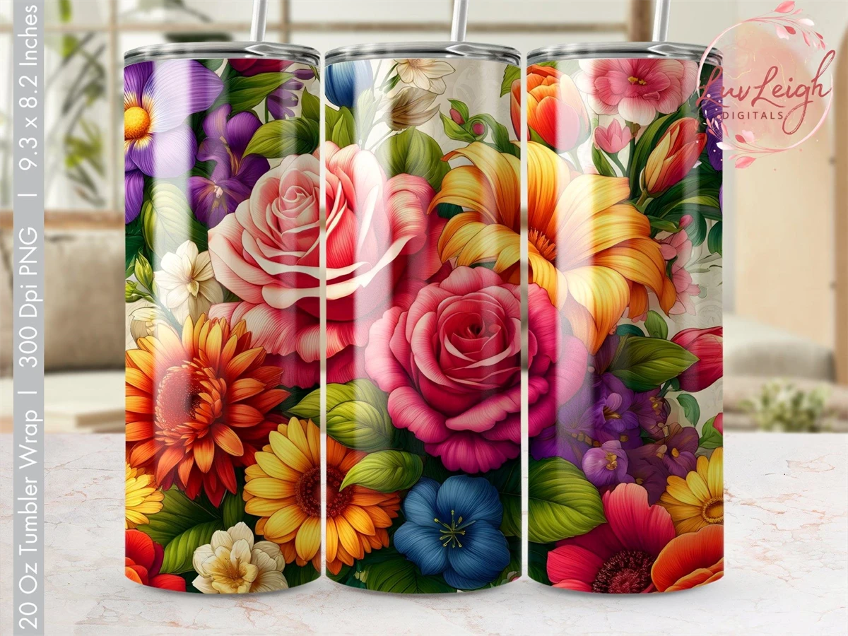 Floral Digital Tumbler Wrap, Colorful Flower Tumbler PNG
