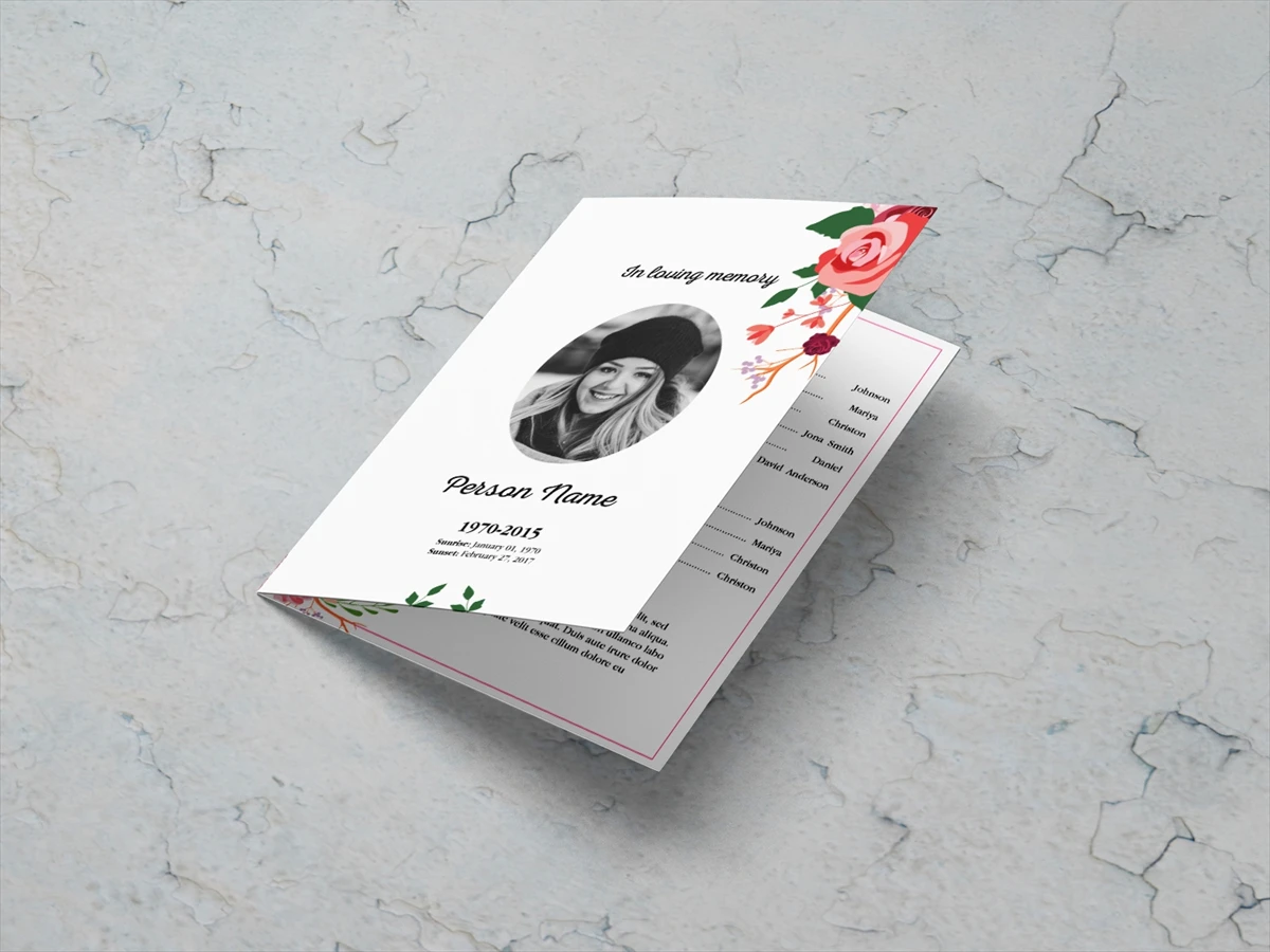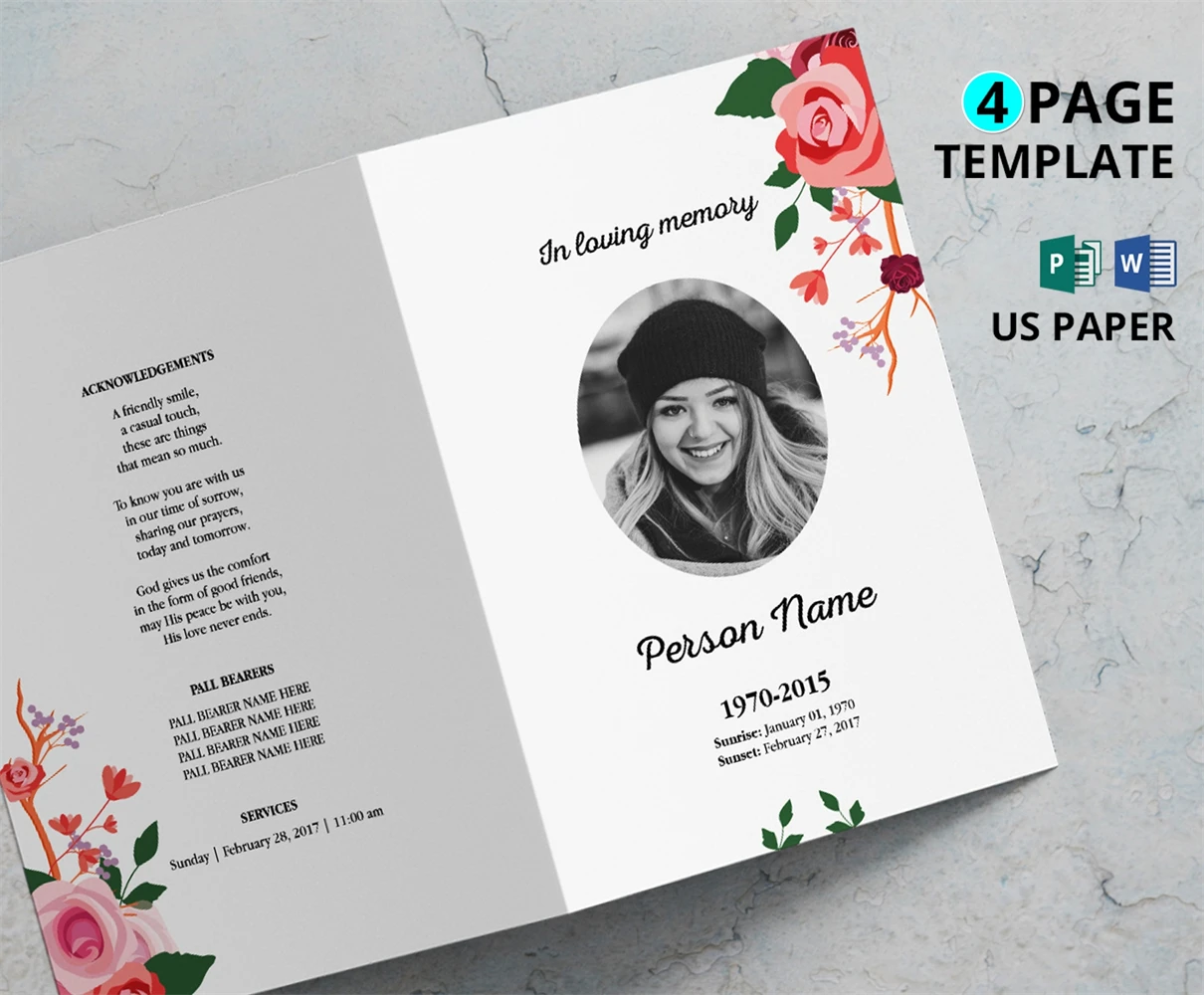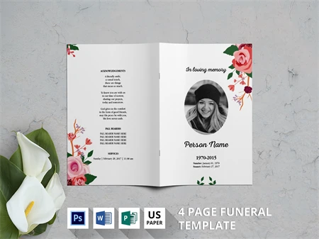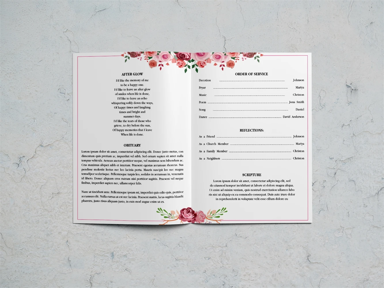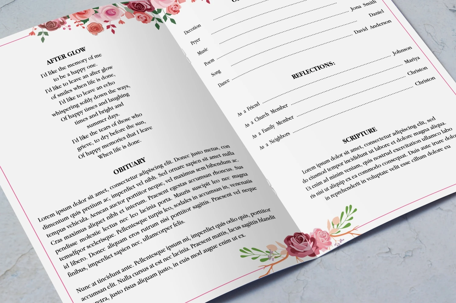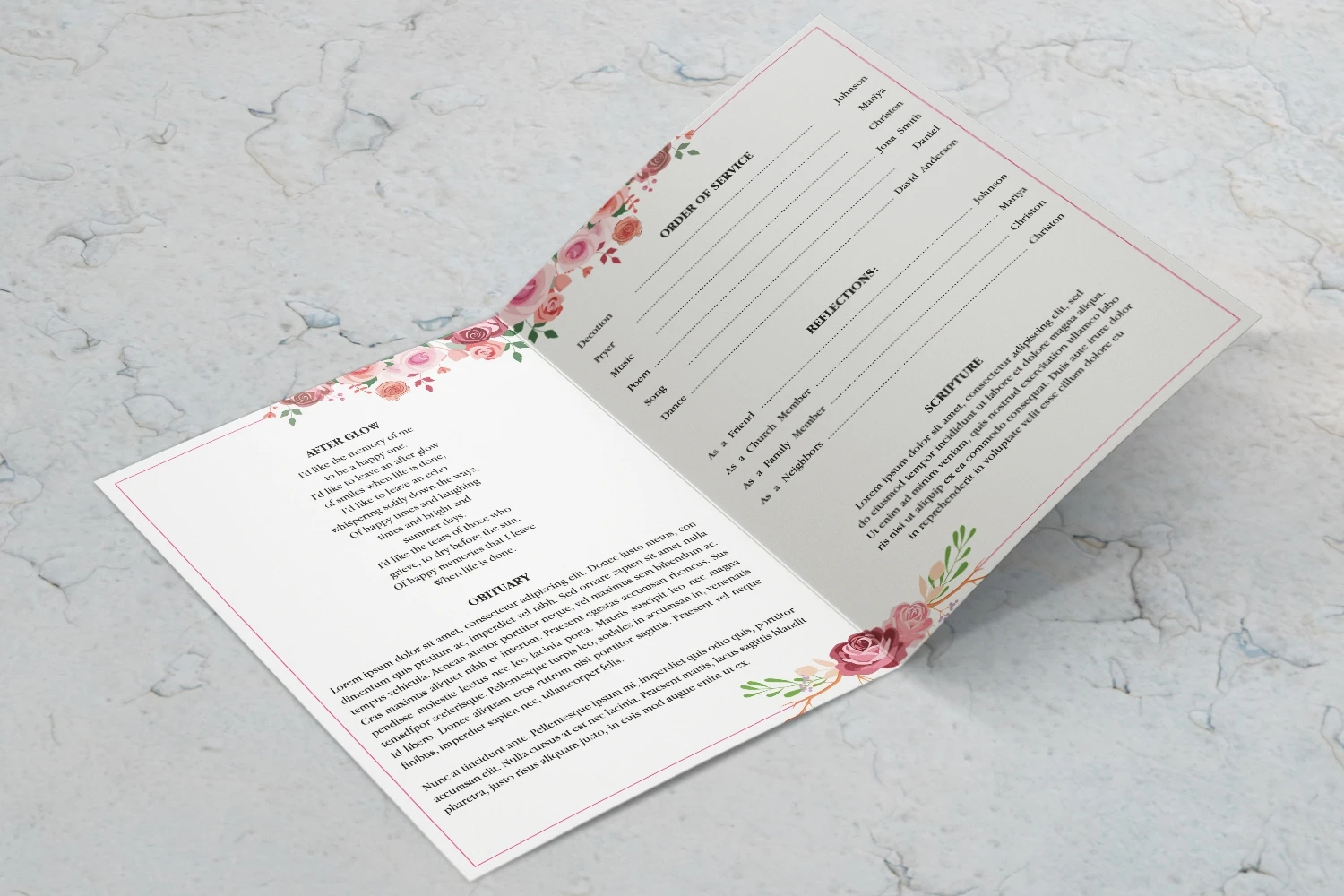 8.5x11 Inches Word, Publisher and CANVA Funeral Program Template.