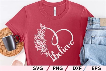 Believe Floral Heart Svg