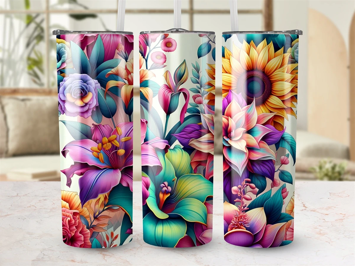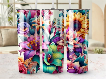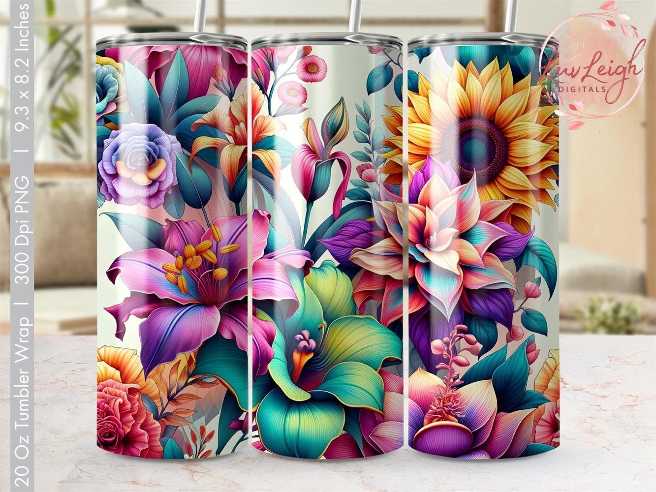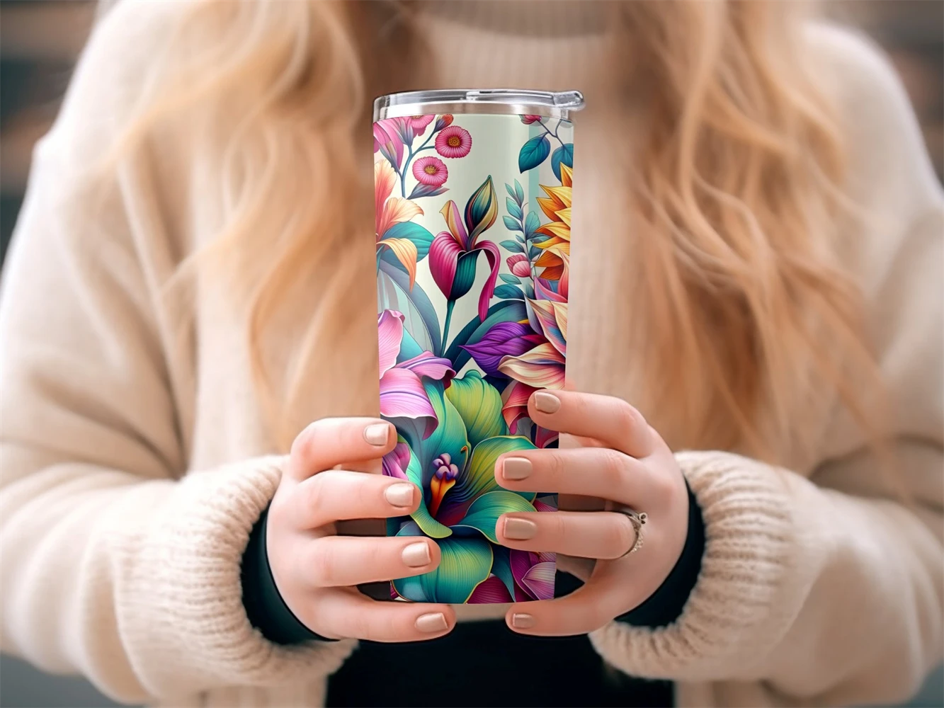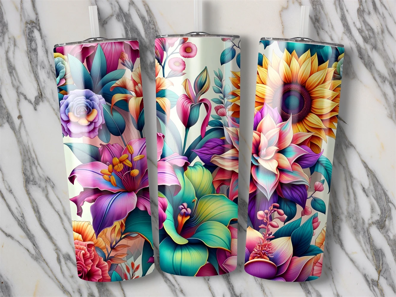 Floral Tumbler Wrap, Vibrant Flowers Tumbler Sublimation PNG