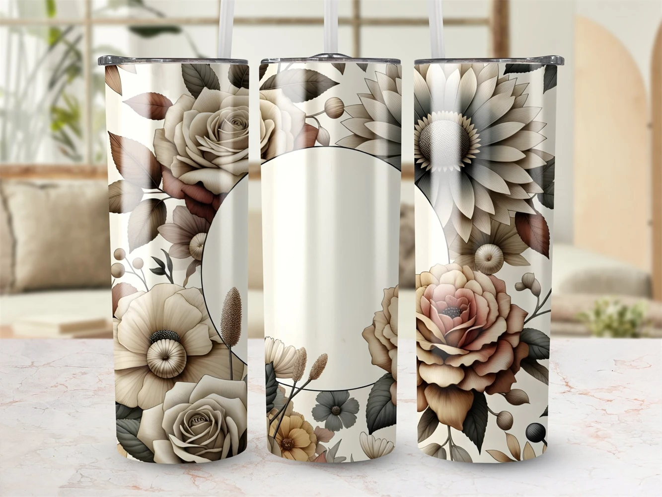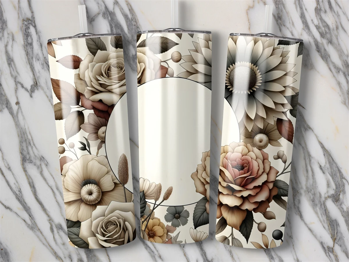 Floral Tumbler Wrap, Vibrant Flowers Tumbler Sublimation PNG
