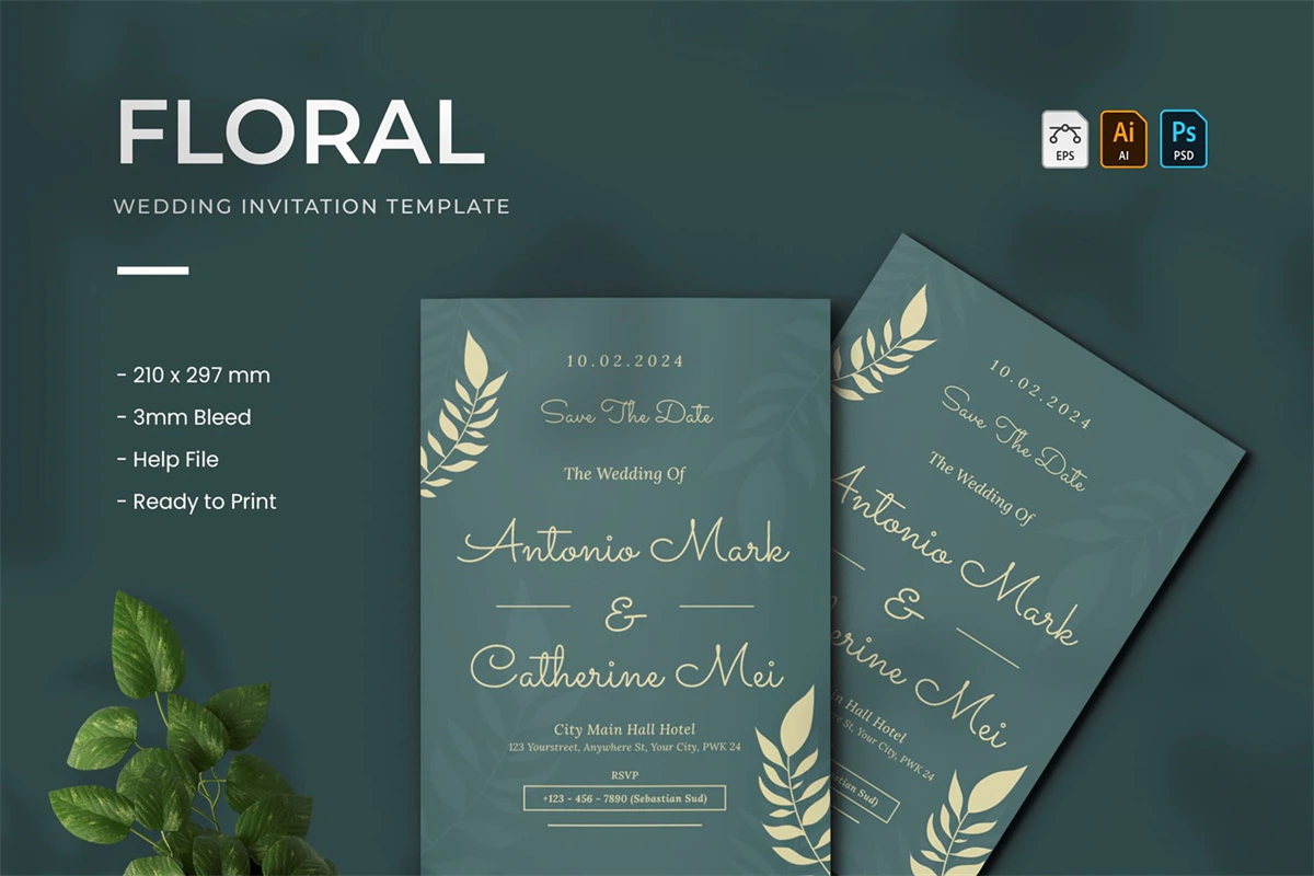 For the couple that wants to express their individuality, this wedding invitation is the right choice. In addition to the print size, we will also offer you with the digital size for Instagram Post and Instagram Story. Facebook and other social media sites also benefit from this. The accompanying AI file is fully vector, so you may scale it to any size without compromising the design.