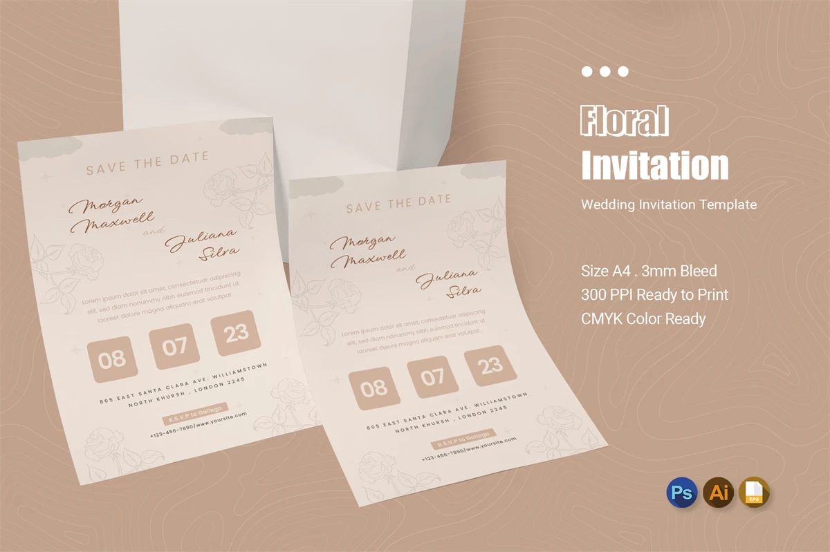 Celebrate your beautiful day with this beautiful wedding invitation template. Our wedding invitation templates will make your guests feel amazed and spread happy vibes. This template is obviously easy to use and customize.
