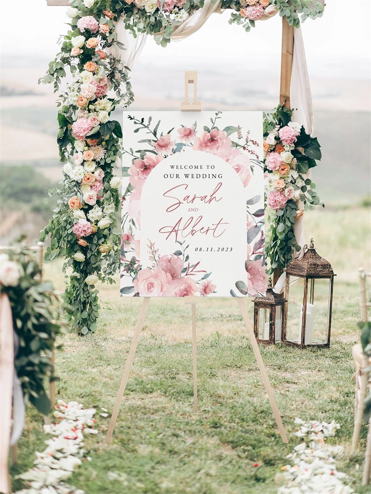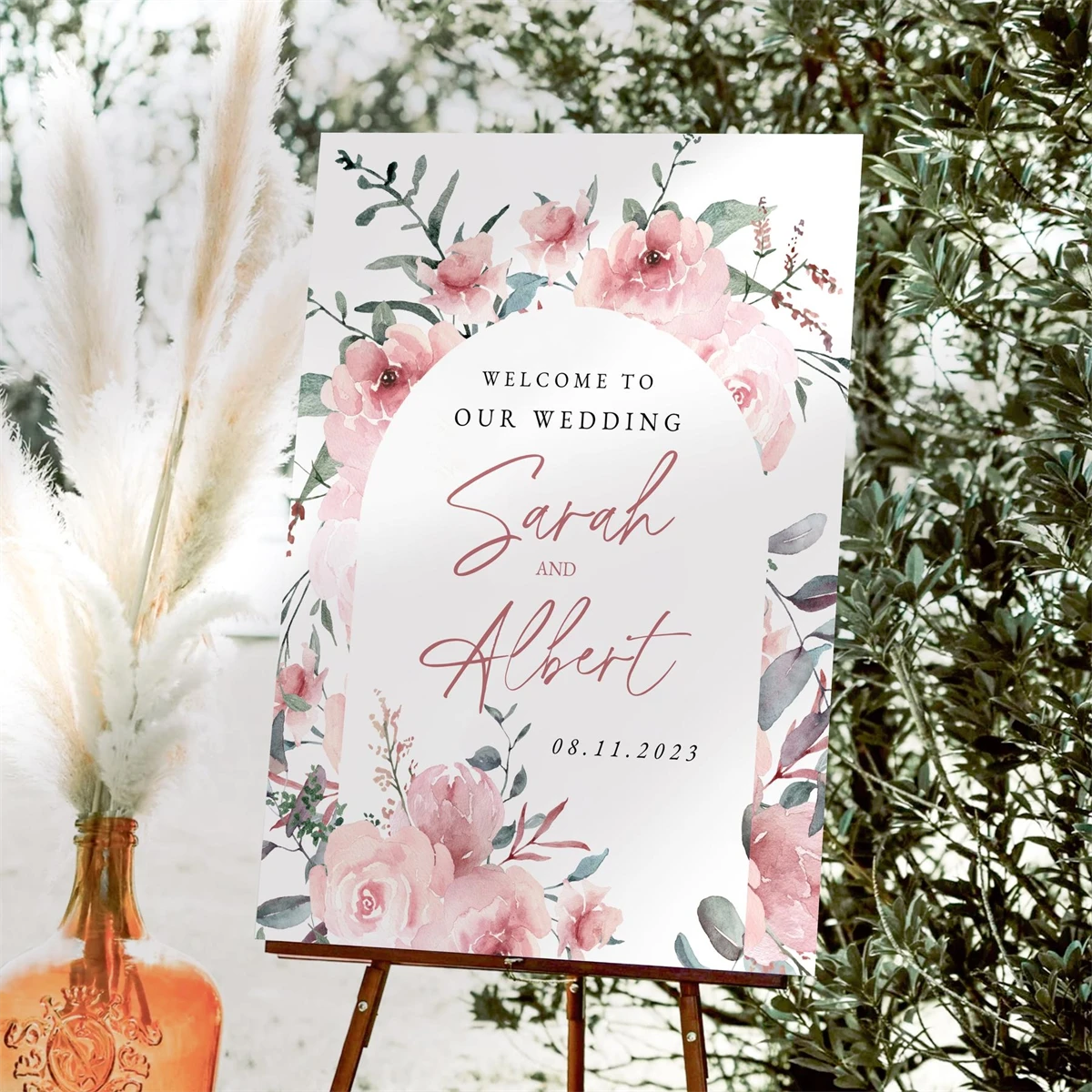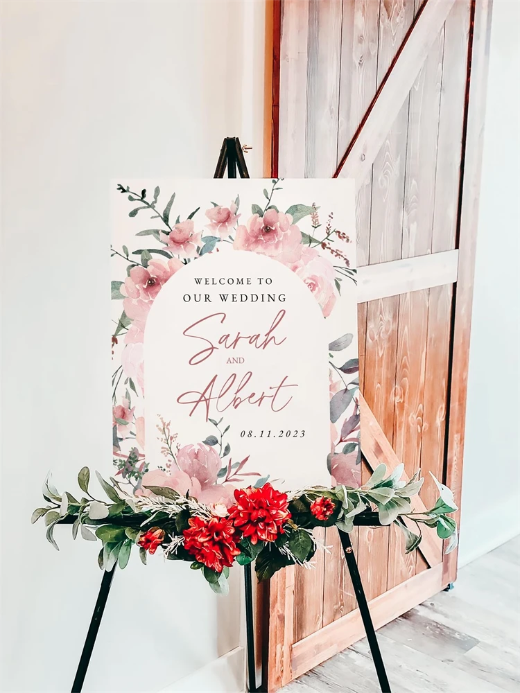 Floral Wedding Welcome Sign, Dusty Pink Welcome Poster,Canva