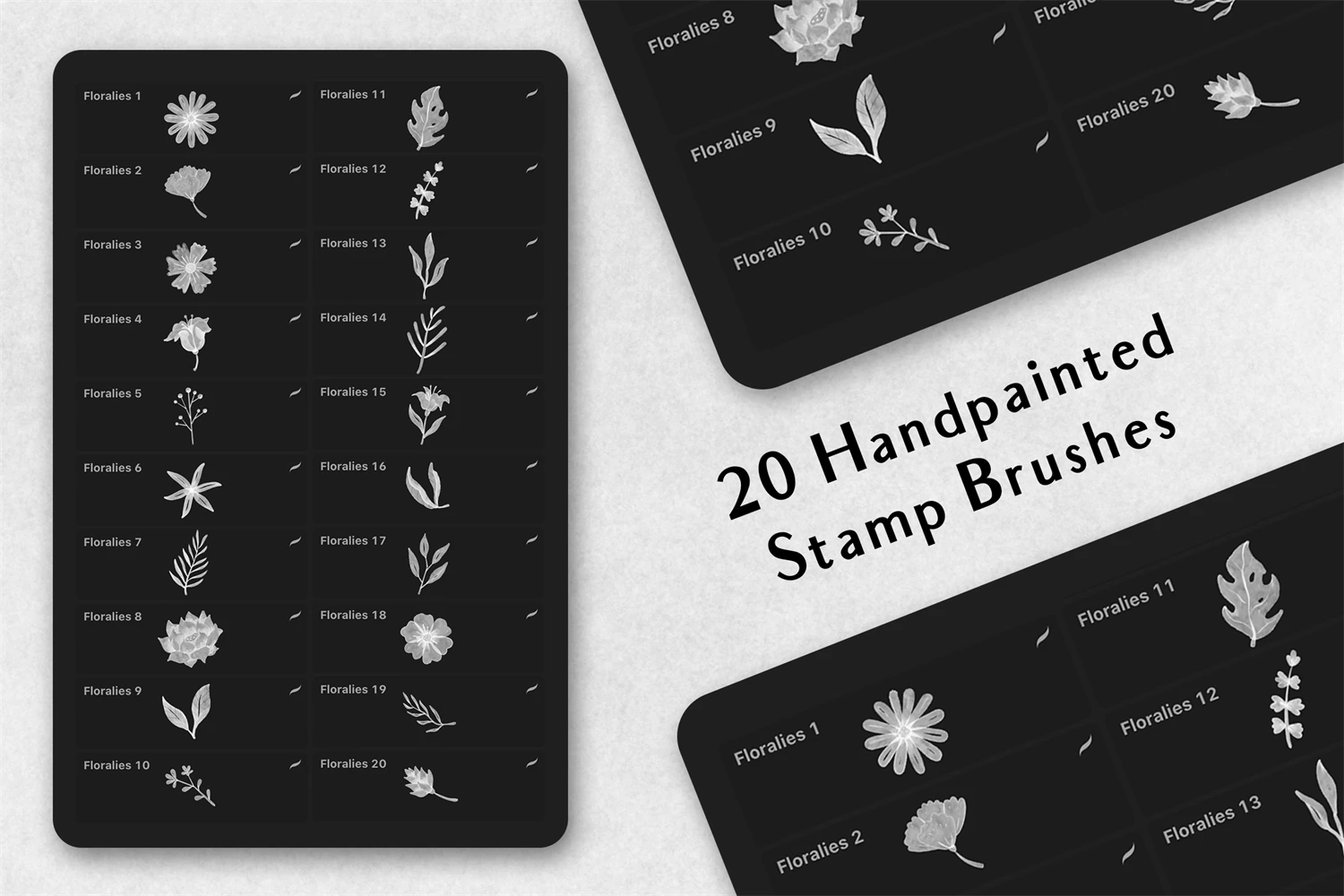 Floralies - Procreate Brushes In this package you will find everything you need - for example, making logos, illustrations, or special backgrounds!. Using a brush is very simple - just place the brush strokes and select the appropriate brush from the brush panel.