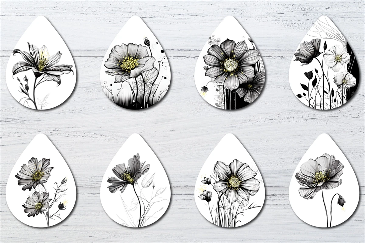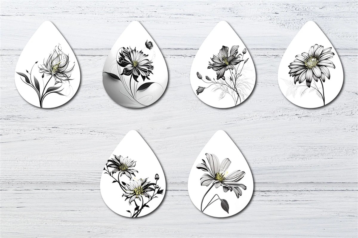 Flower earrings sublimation designs is earring template with flowers sublimation in line art style. There are 14 earring template designs.