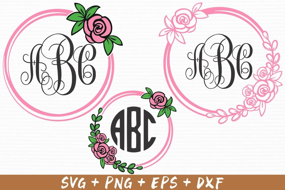 Flower Monogram Frame Svg Circle Rose Monogram Floral Wreath