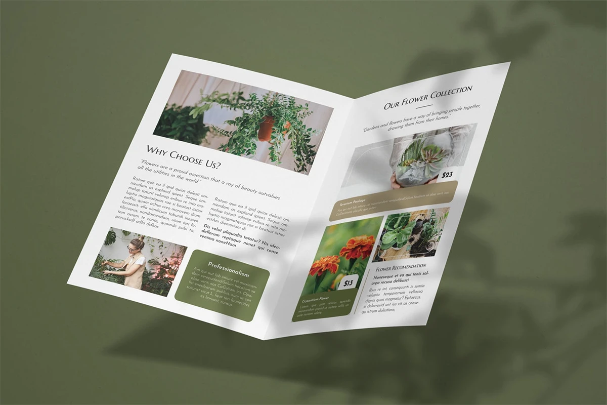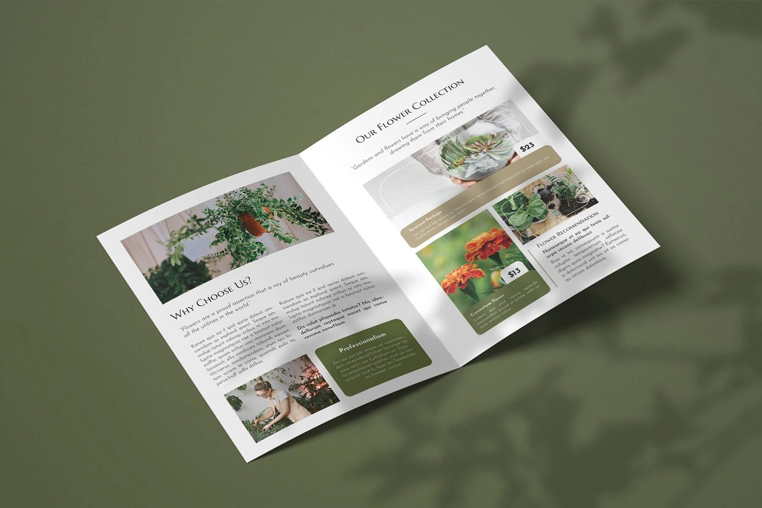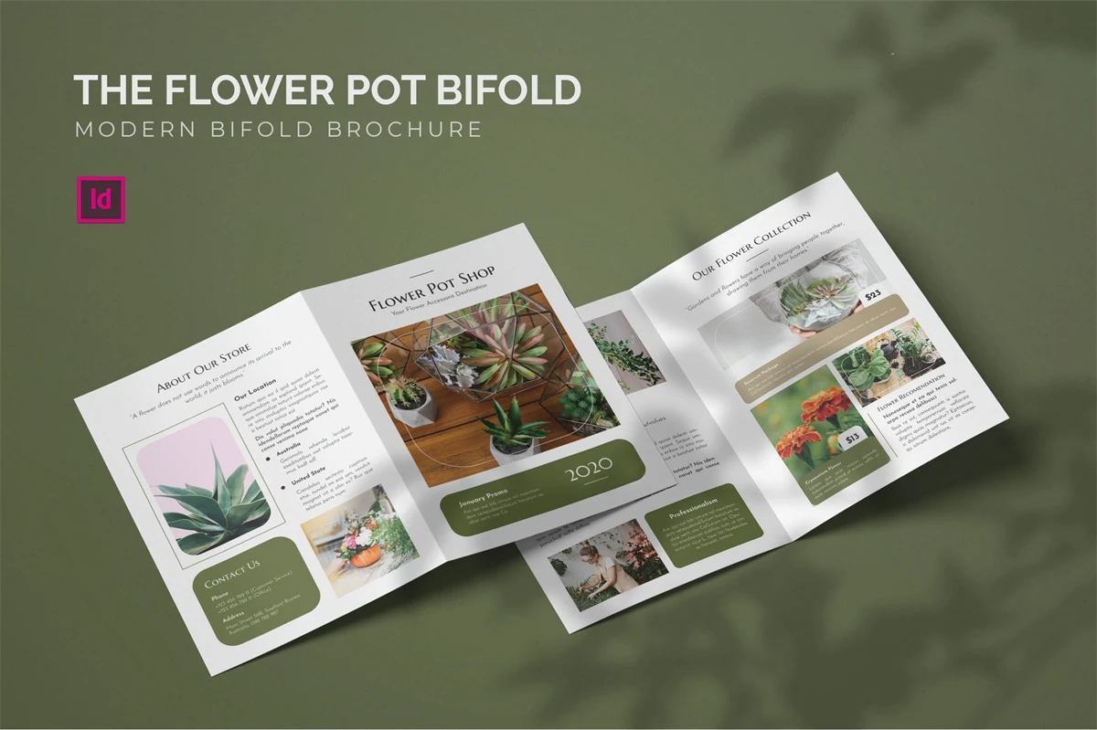 Flower Pot - Bifold Brochure We present this Bifold Brochure for you, simple and very elegant, and this Bifold Brochure is suitable for all types of your business, made with adobe inDesign, very easy to customize, Hope you Like it, dont forget to rate, Thanks.