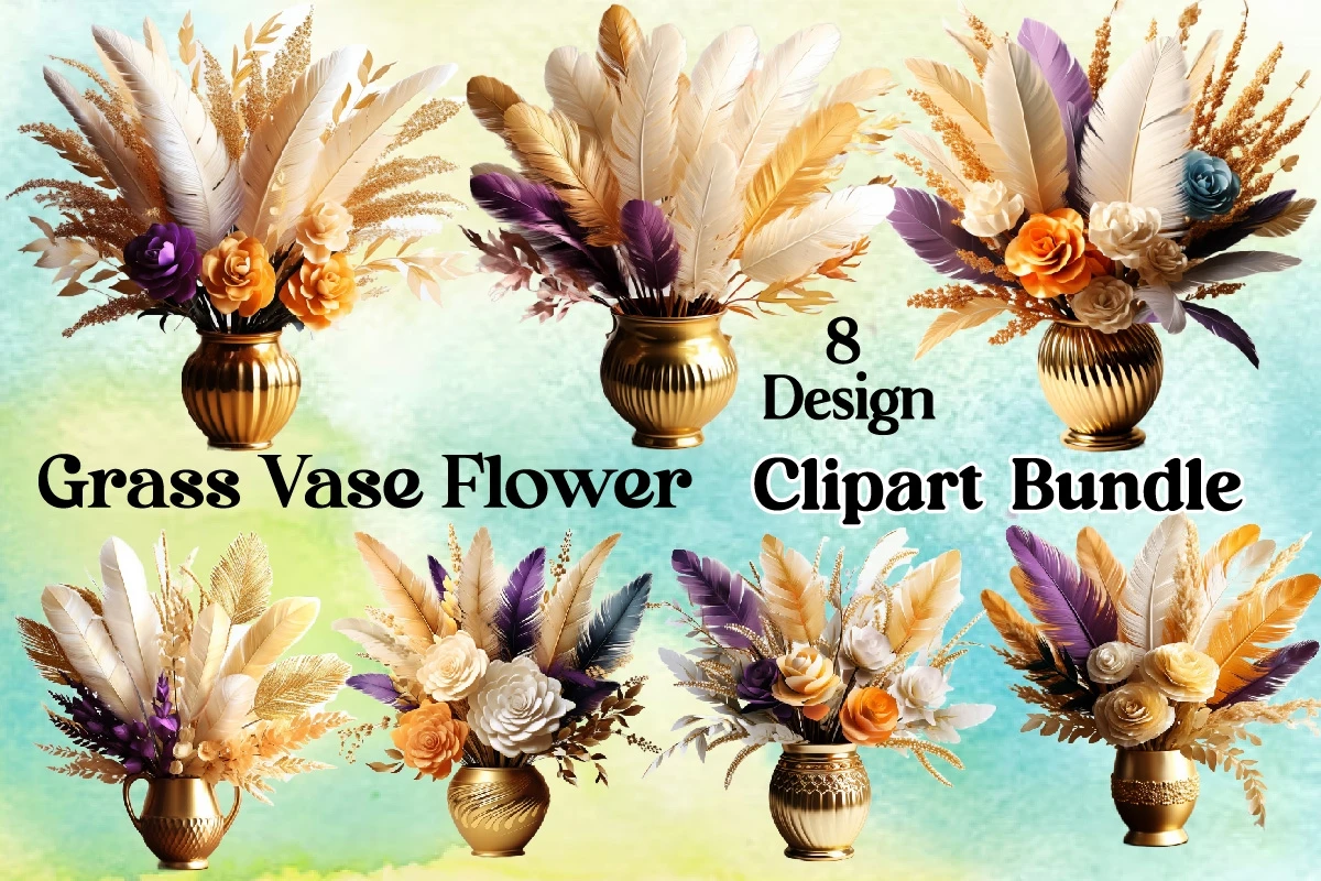 Watercolor Grass Vase Flower Sublimation Bundle