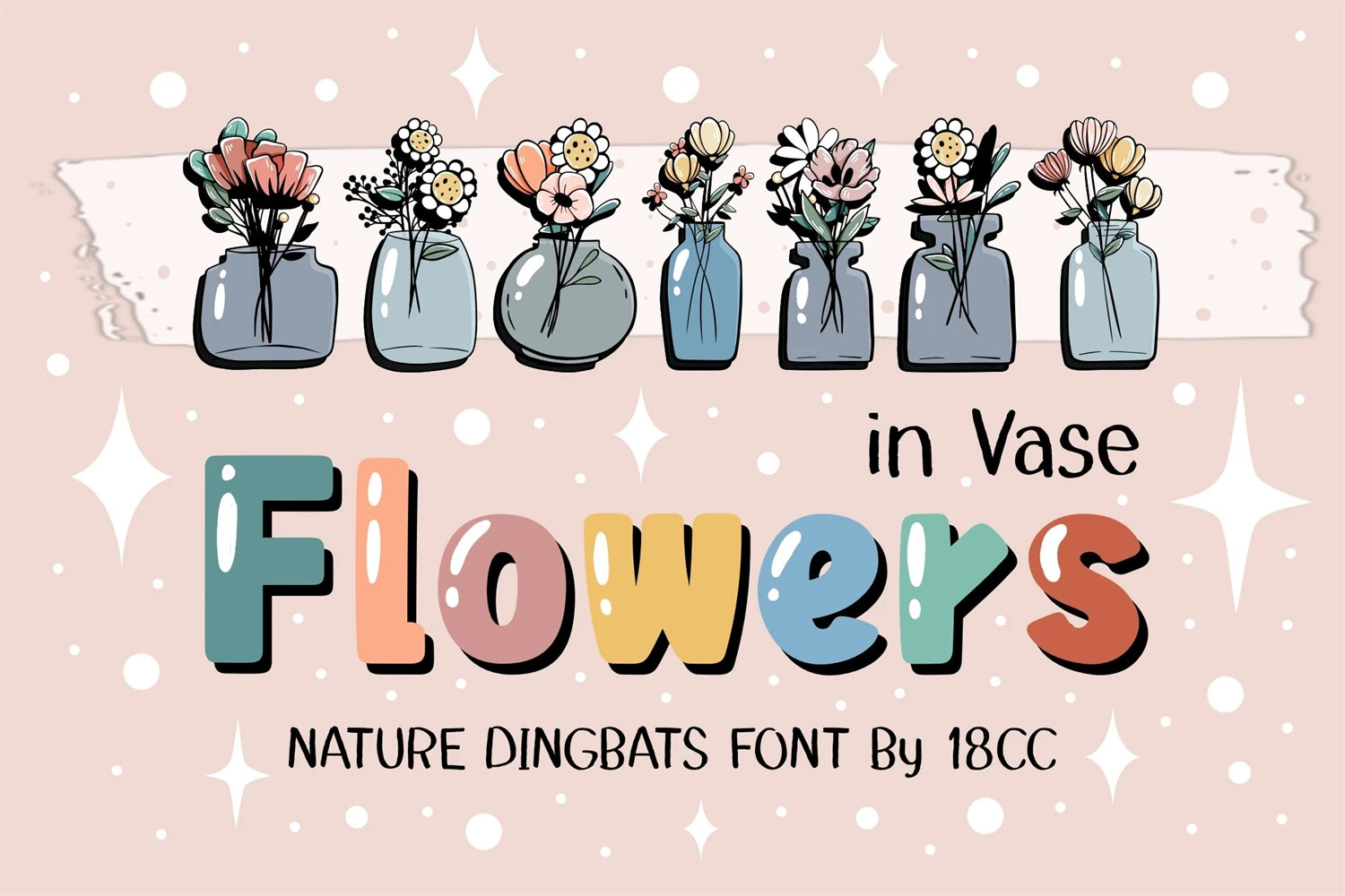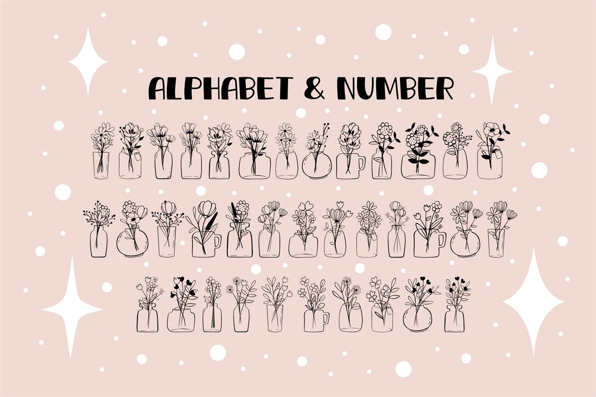 Flowers in Vase is a nature dingbats font. This font is the perfect fit for all of your logos, wall art, signs, cards, art prints, t-shirts, coloring page, and much more!