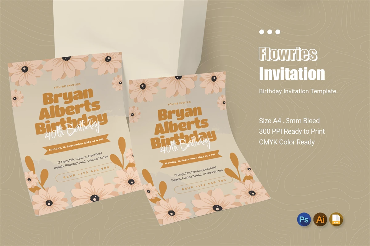 Of course you want to invite friends to your birthday party with the best invitations! Impress the invited guests with your style of invitation, by using this invitation card template. You can easily edit & customize each of the designs because every component is well organized and editable.