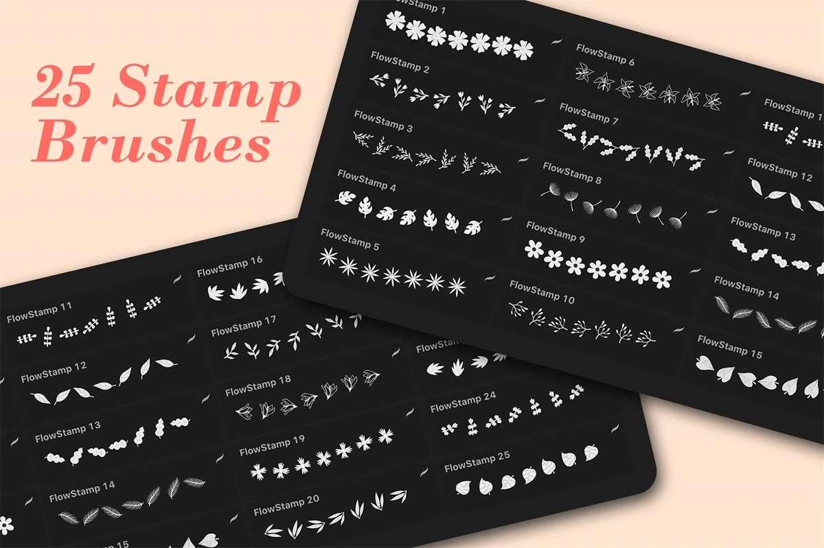 FlowStamp - Procreate Brush In this package you will find everything you need - for example, making logos, illustrations, or special backgrounds!. Using a brush is very simple - just place the brush strokes and select the appropriate brush from the brush panel.