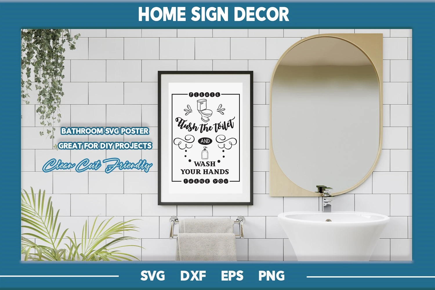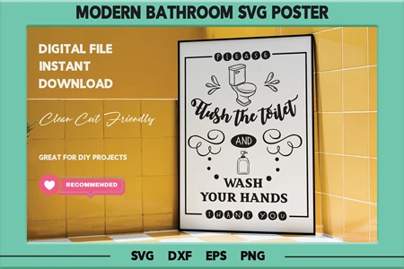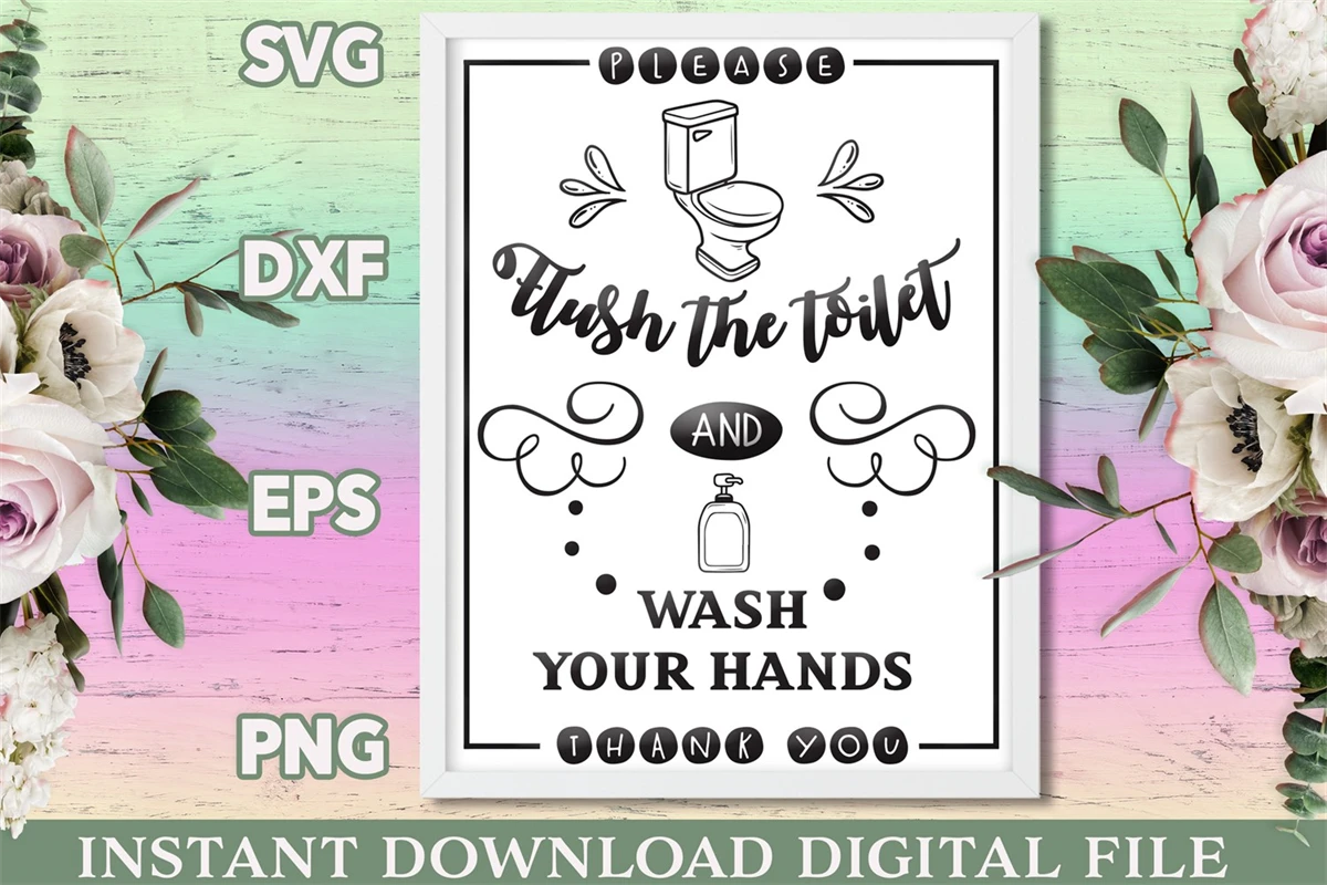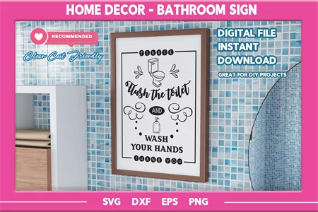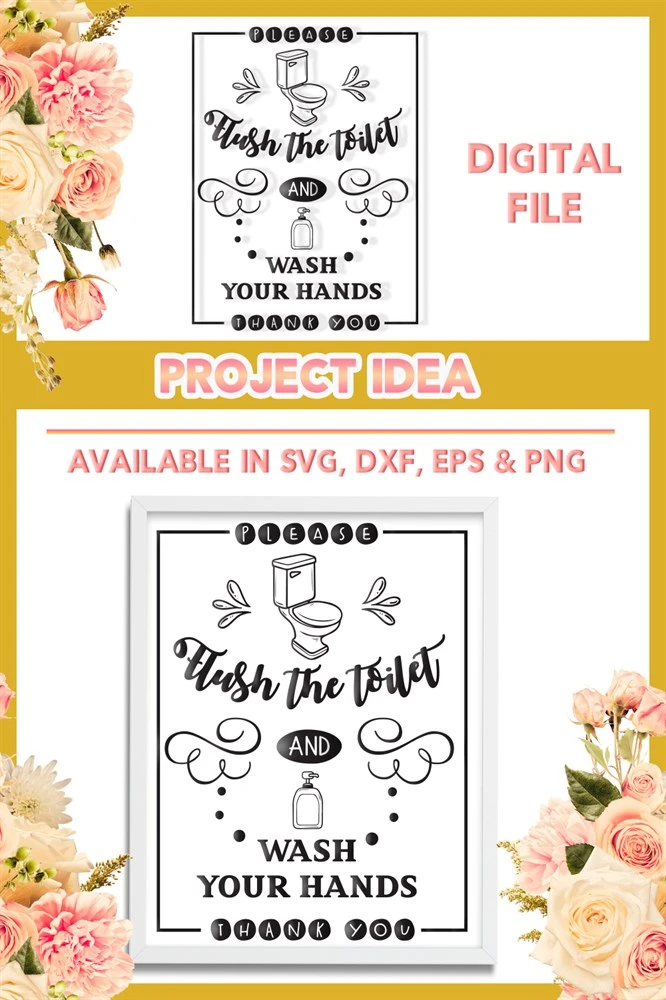 The main objective when creating this bathroom sign has been to have a nice poster for you to decorate your home. You can use this cut file as a printable, wood sign, canvas, and poster. You can also print it as a vinyl decal and stick it straight to your bathroom wall or your toilet seat tanks if there's enough room.