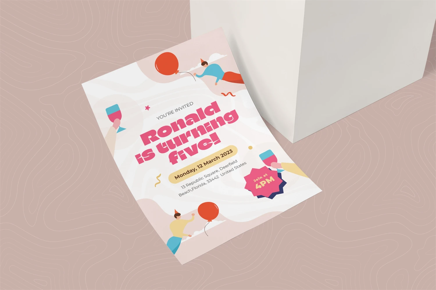 Of course you want to invite friends to your birthday party with the best invitations! Impress the invited guests with your style of invitation, by using this invitation card template. You can easily edit & customize each of the designs because every component is well organized and editable.
