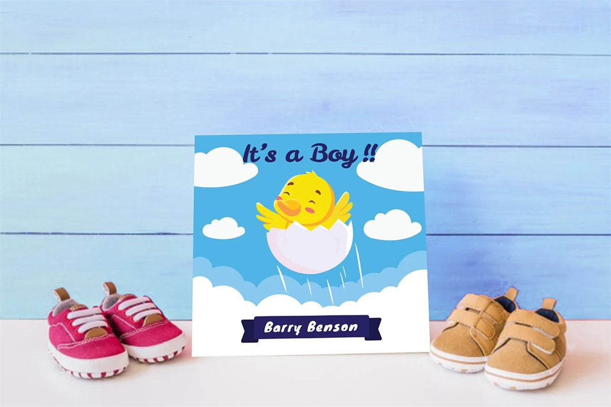 New It's a Boy (3 x 3 inch) + 0.125 inch bleeding