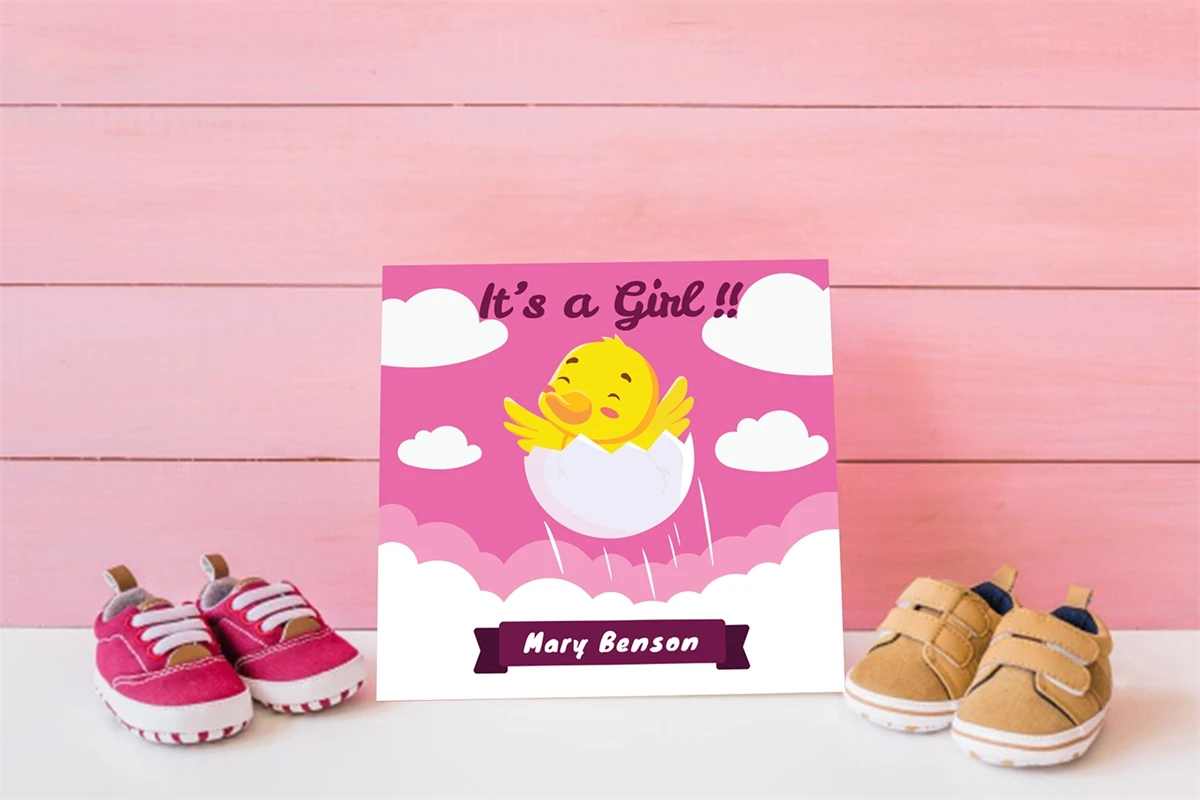New It's a Girl (3 x 3 inch) + 0.125 inch bleeding