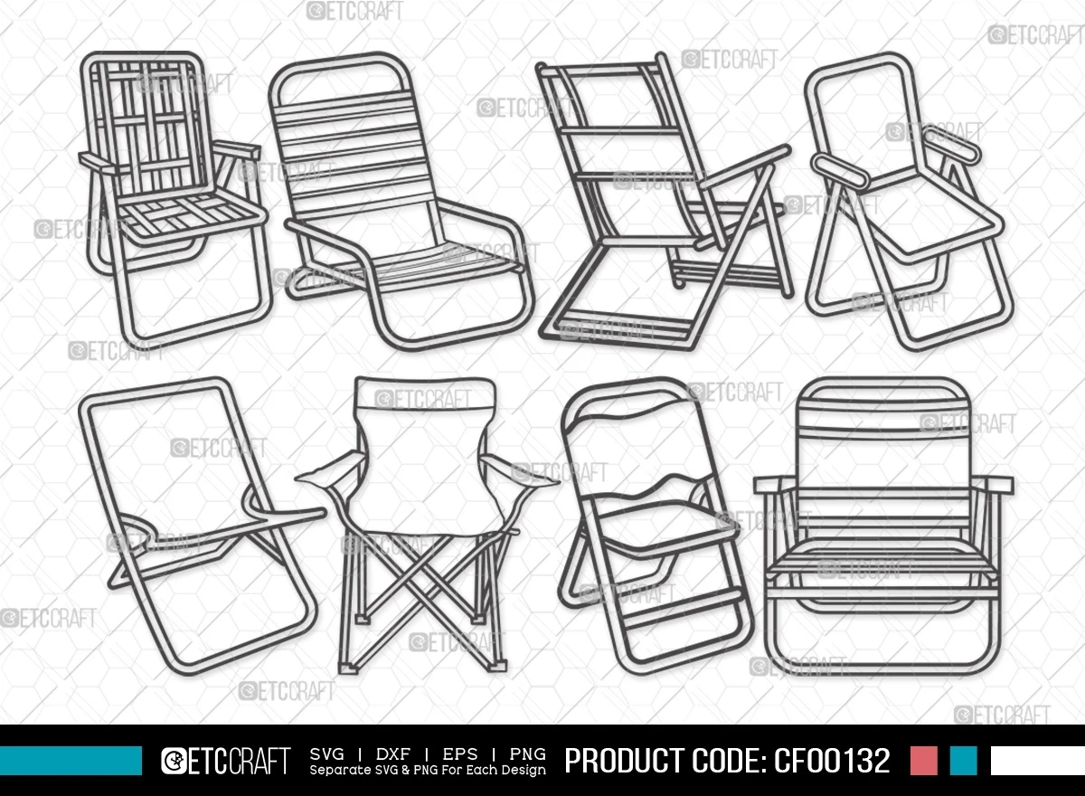 Relax and unwind creatively with our Folding Beach Chairs Outline Lawn Camping Chair Cut File Bundle. This collection features a delightful array of outline clipart designs inspired by folding chairs, perfect for infusing a sense of leisure and comfort into your crafts. Whether you're a beach lover, a camping enthusiast, or a crafting aficionado, this bundle provides the ideal tools to create designs that evoke the joy of lounging and enjoying the outdoors.