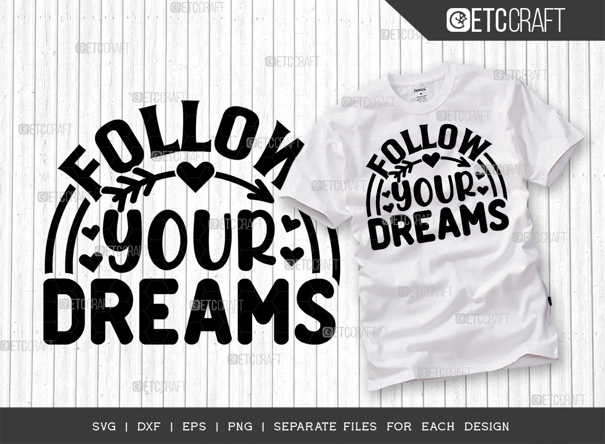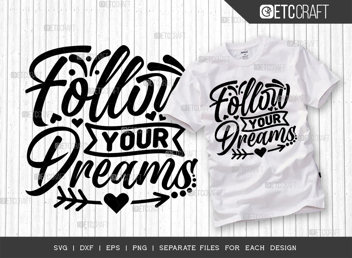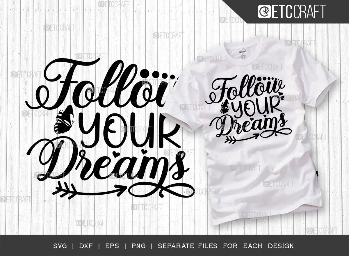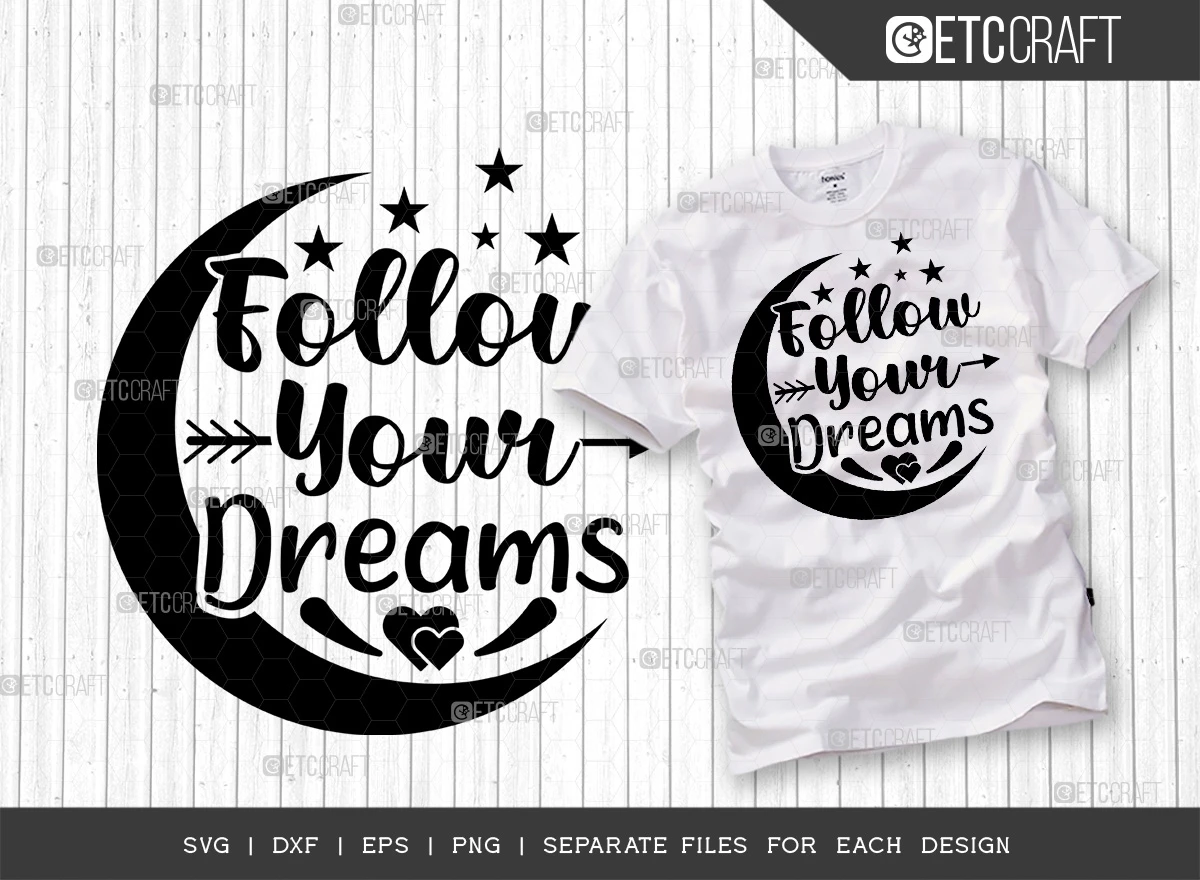 This Follow Your Dreams SVG Bundle is the perfect way to inspire yourself and others to never give up on their dreams. The bundle includes 6 high-quality SVG files that can be used to create a variety of creative projects, such as: