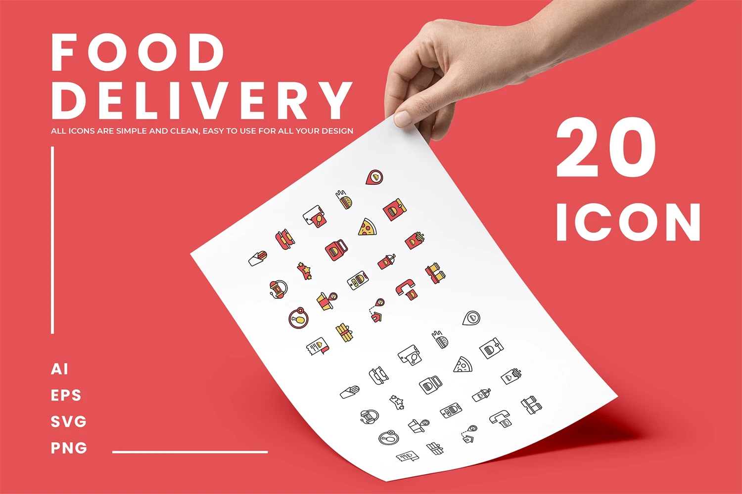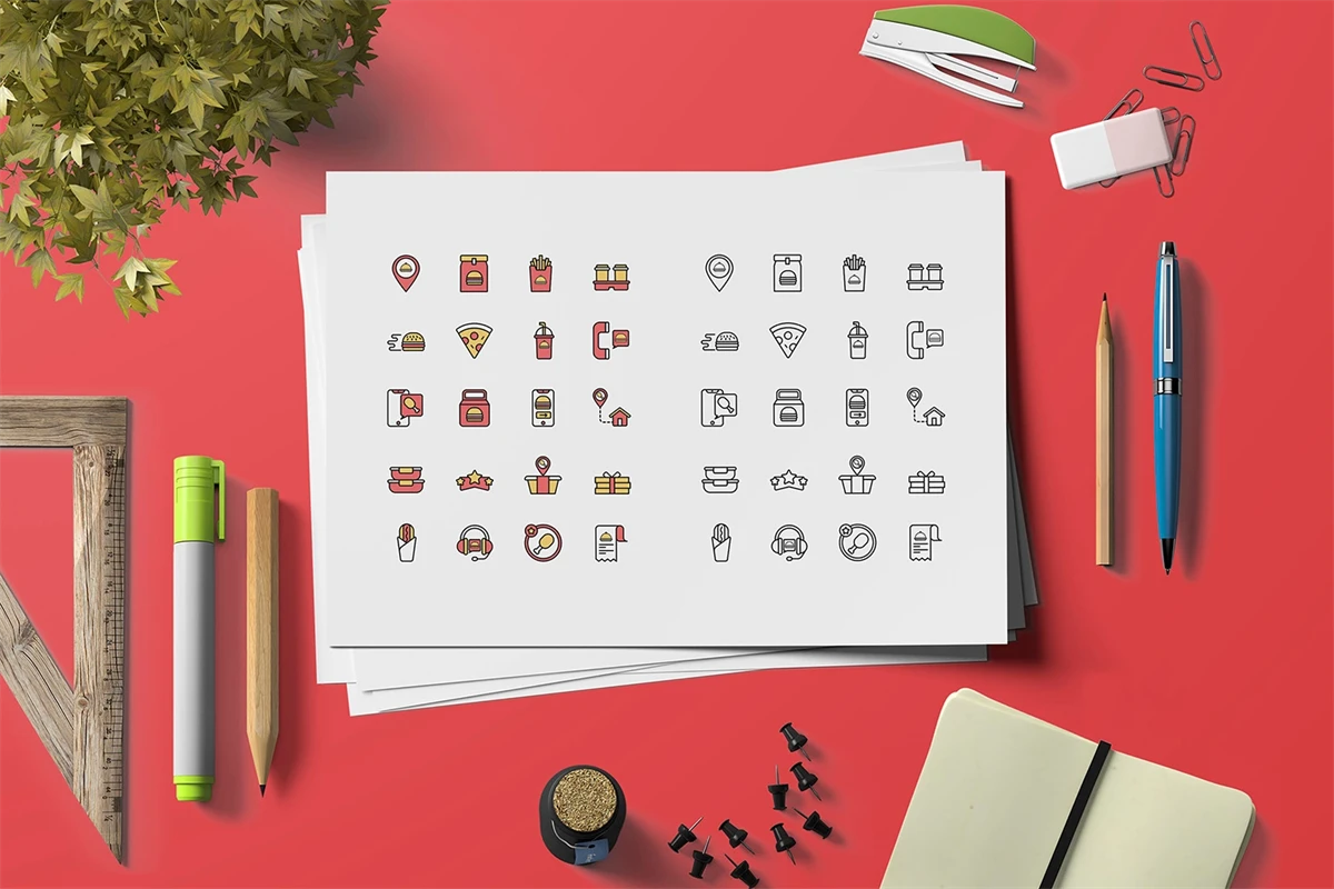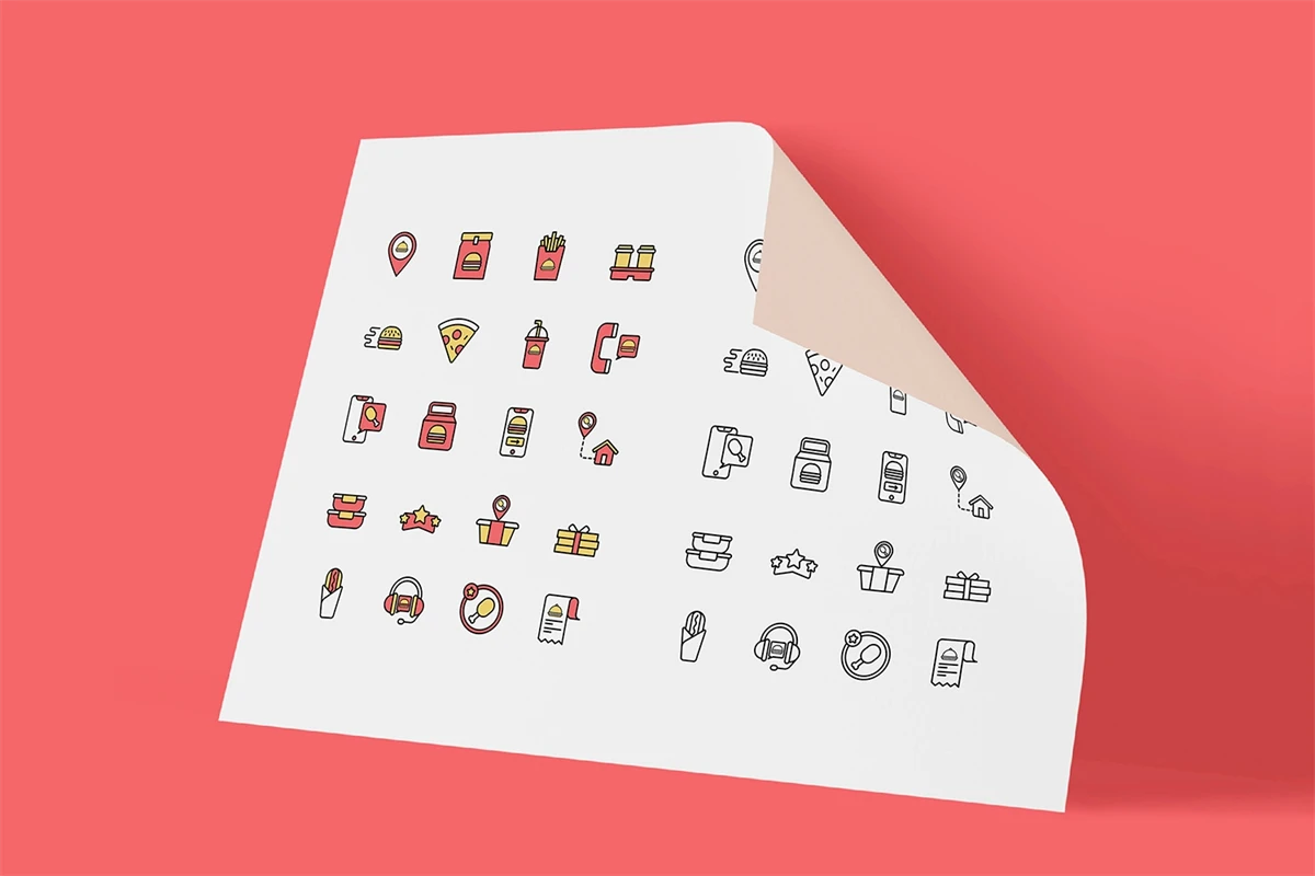 Don't miss it Food Delivery - Icons This professional Icons pack, high quality, for professional designers, easy to use, fully editable & customizable in Adobe Illustrator