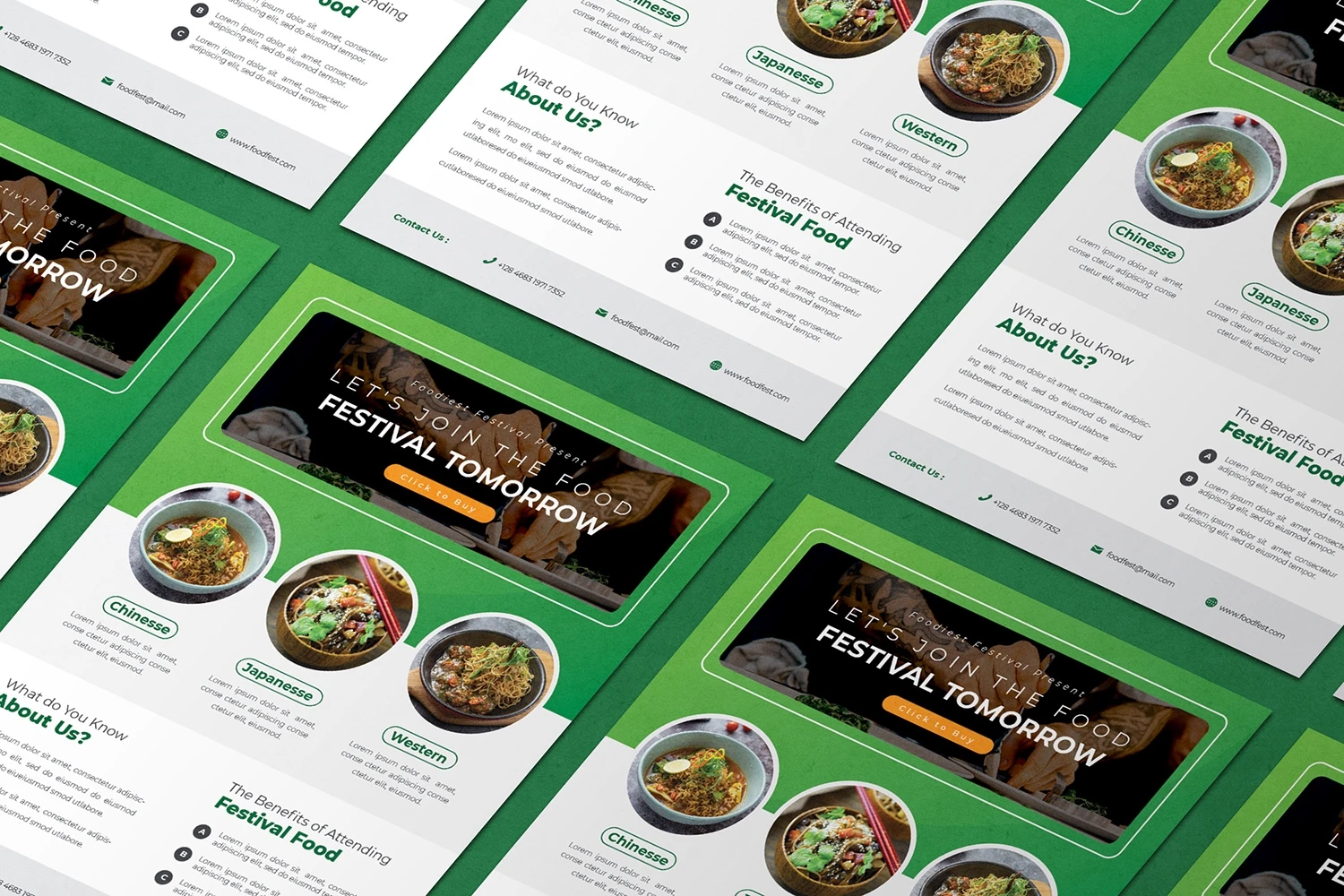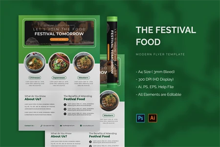 Food Festival - Flyer. This Flyer template is designed for your company's business needs. very clean and elegant, and also easily edited and adjusted to your liking