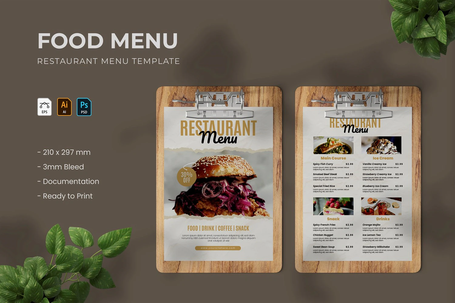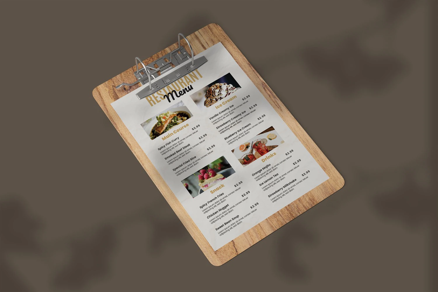 Menu Restaurant Template is a menu template for people who sell, business, or run a food-related business. The layout makes it easy to find the menu you want. Too many choices can make customers feel overwhelmed, so its better to limit the number of choices, colors, and other design elements so that customers can easily scan and order items.