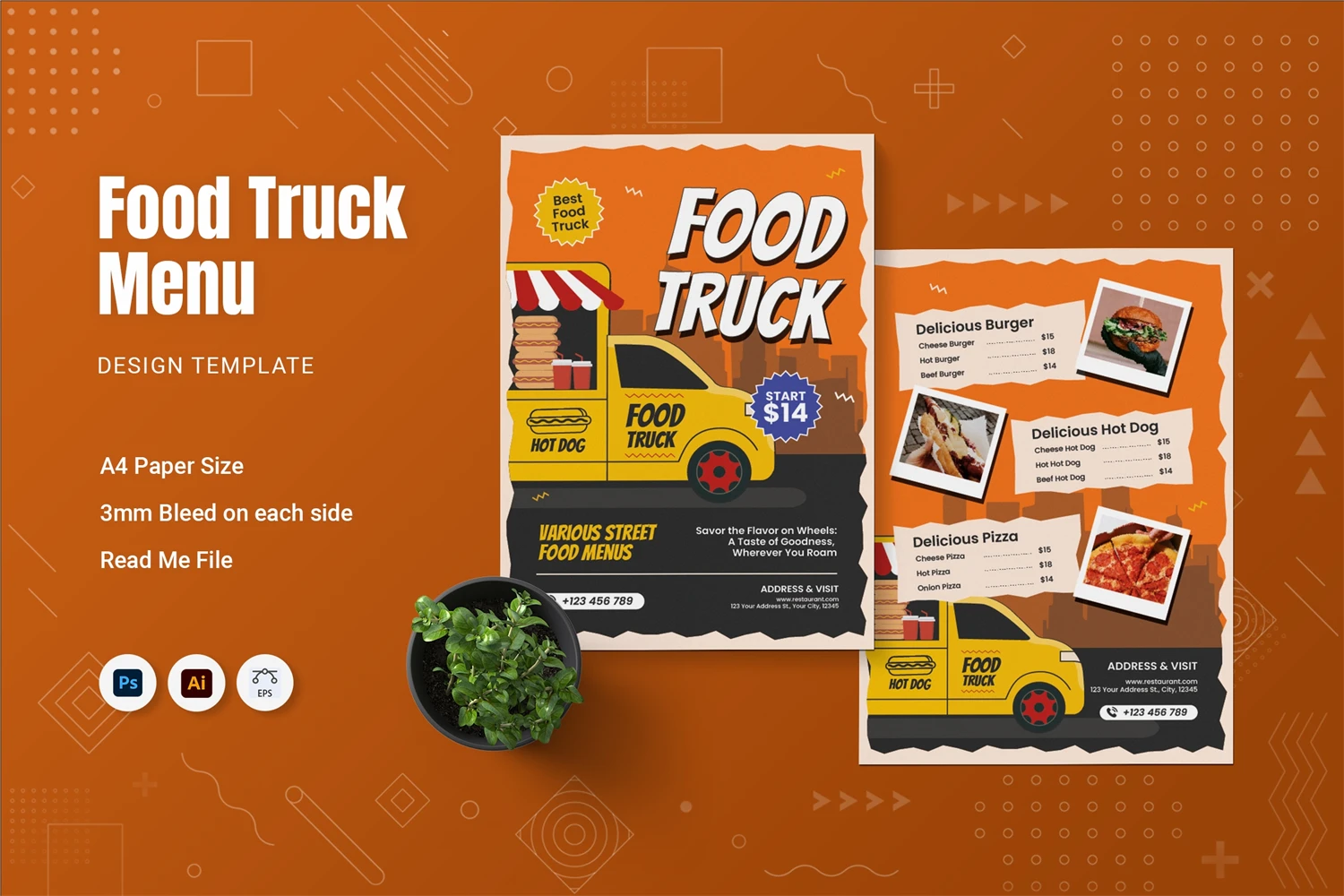 Promote your restaurant, cafe, or anything else with this **"Food Truck Menu."**