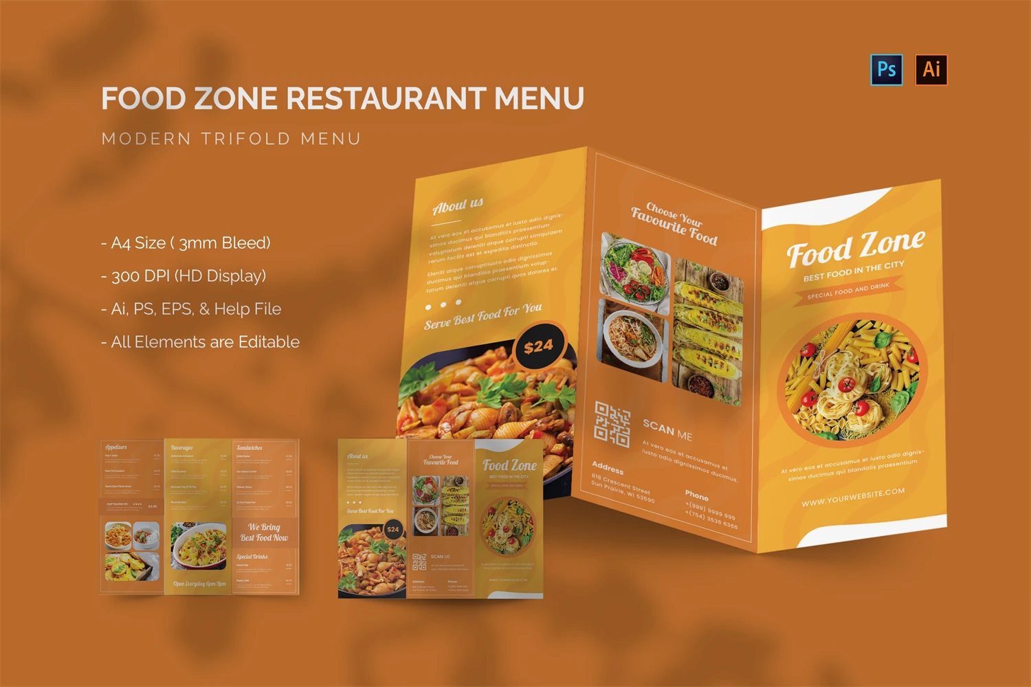 Food Zone - Restaurant Menu. This template is great for your business and will make your customers interested, elegant, and easily editable according to your needs, this restaurant menu is perfect for, promos, cafes, hotels, resort shops online. etc. I hope you enjoy this restaurant menu