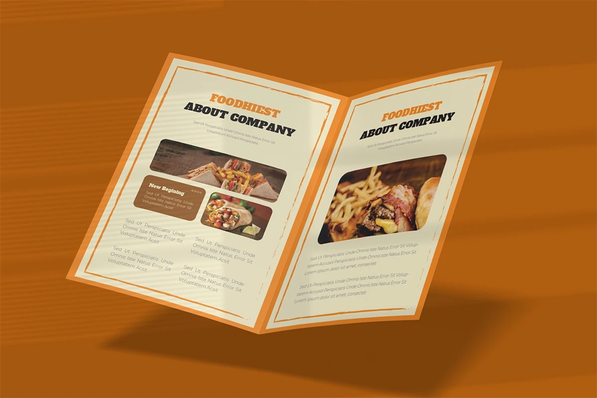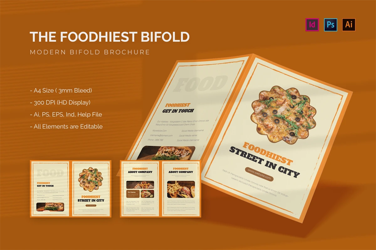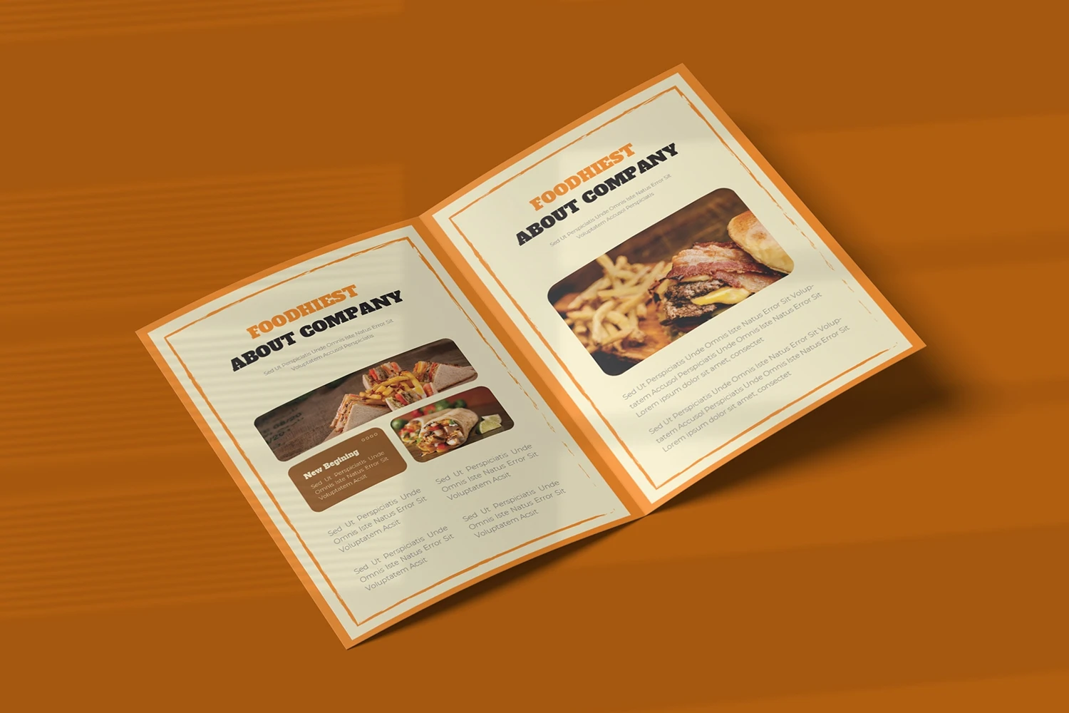 Foodhiest - Bifold Brochure We present this Bifold Brochure for you, simple and very elegant, and this Bifold Brochure is suitable for all types of your business, made with Adobe InDesign (INDD), Adobe Photoshop (PSD) and Adobe Illustrator (AI), very easy to customize, Hope you Like it, dont forget to rate, Thanks.