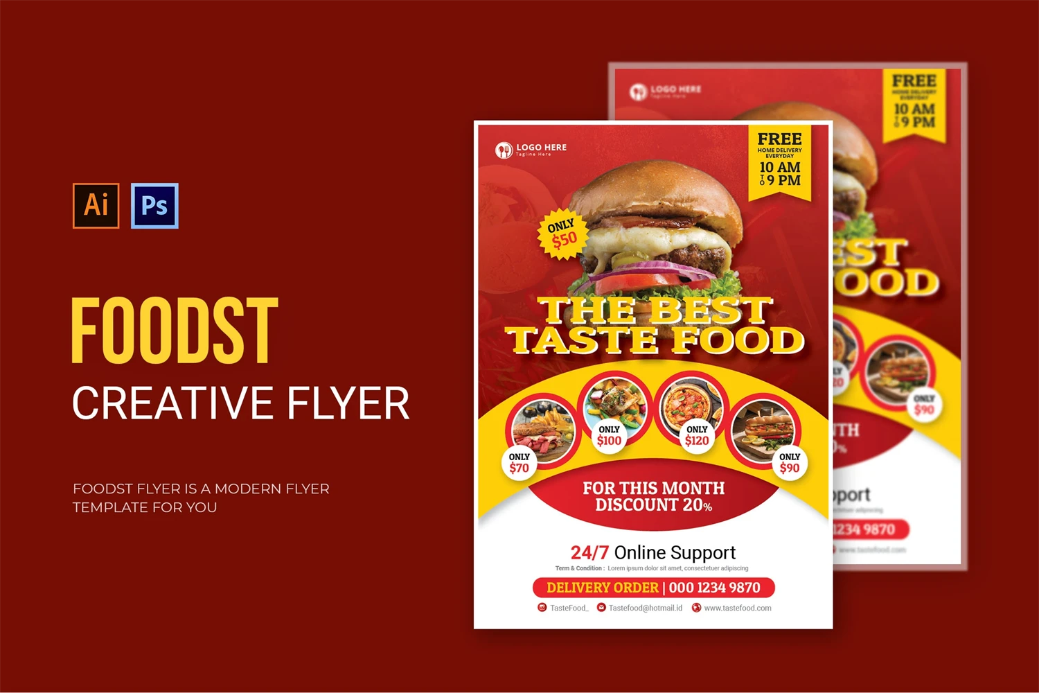 Foodst - Flyer. This Flyer template is designed for your company's business needs. very clean and elegant, and also easily edited and adjusted to your liking