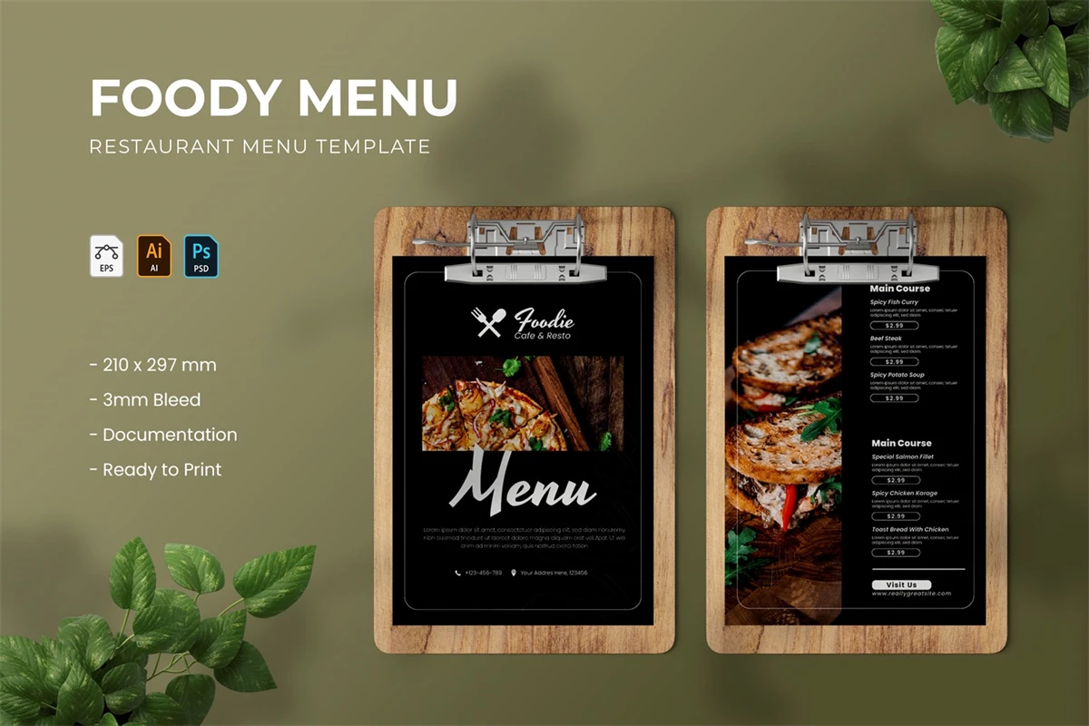 Menu Restaurant Template is a menu template for people who sell, business, or run a food-related business. The layout makes it easy to find the menu you want. Too many choices can make customers feel overwhelmed, so its better to limit the number of choices, colors, and other design elements so that customers can easily scan and order items.